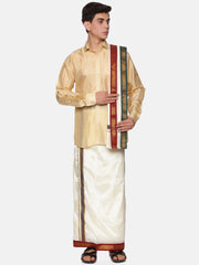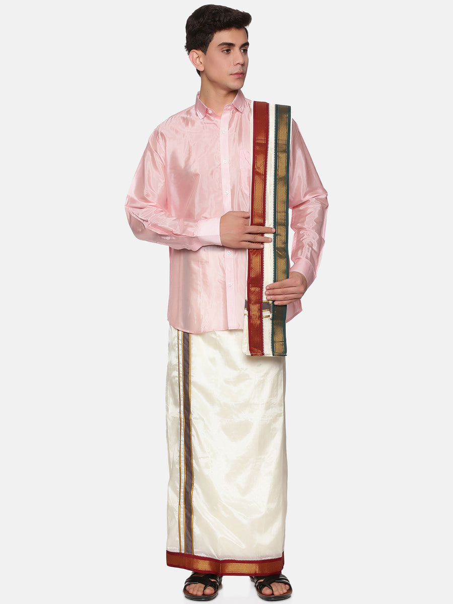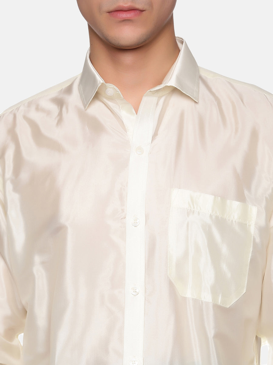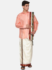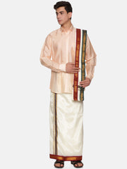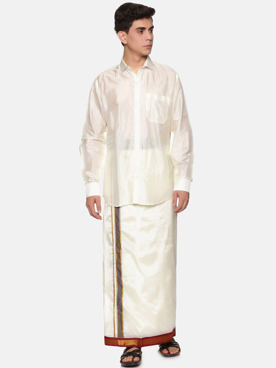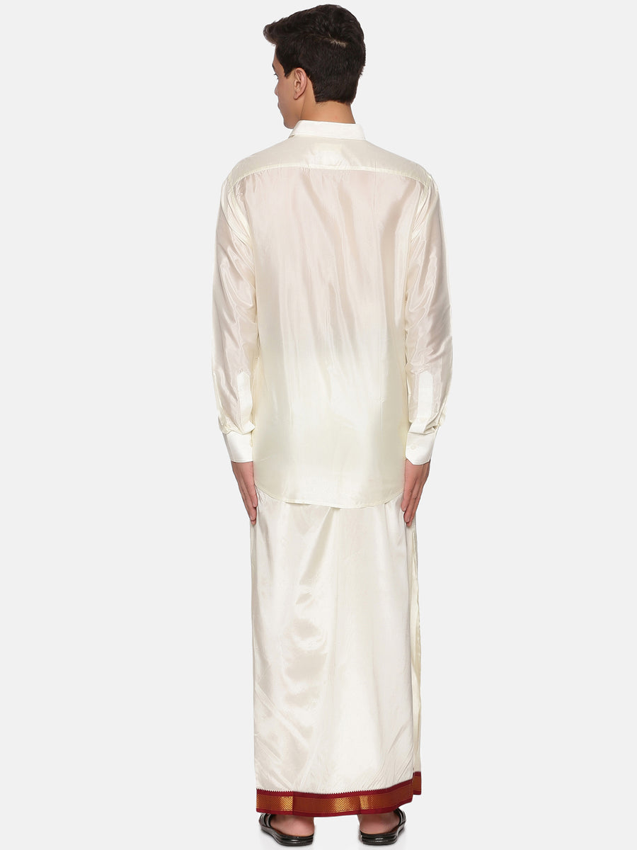 Mens Artsilk Full Sleeve Shirt with Cream Dhoti and Angavastram Set