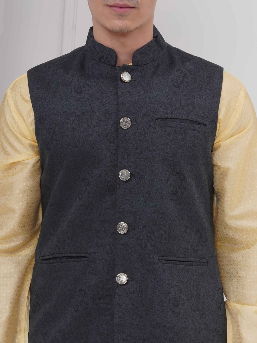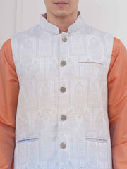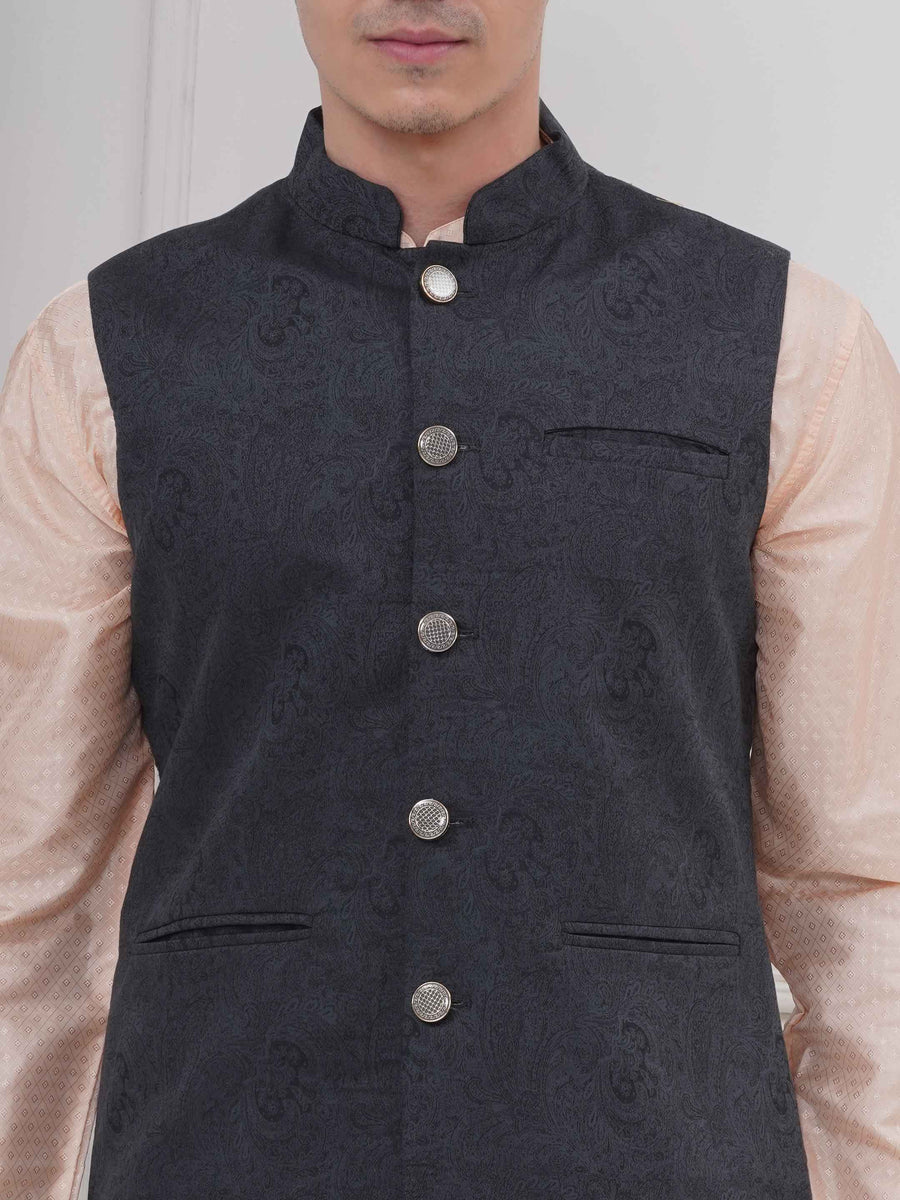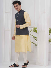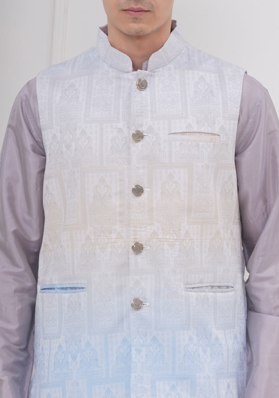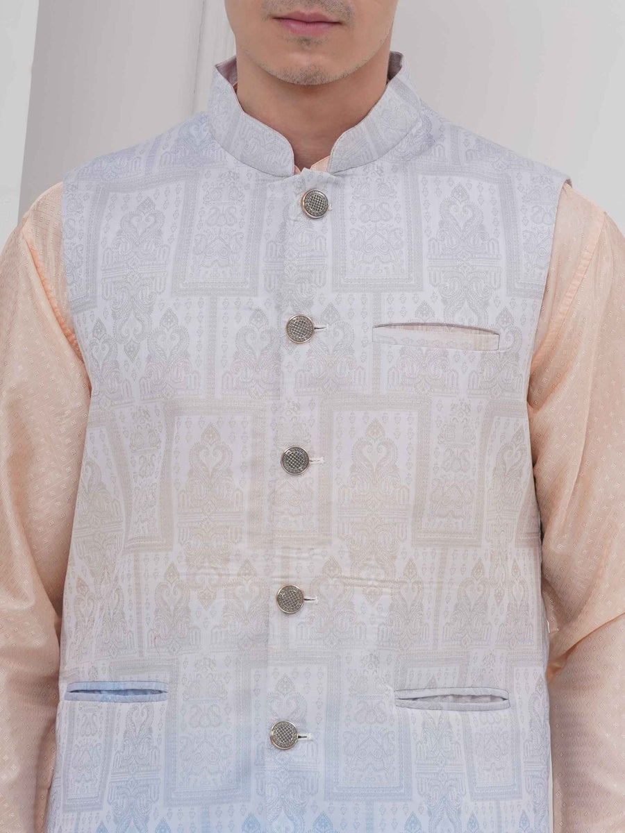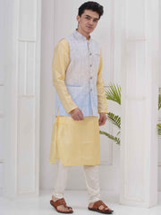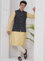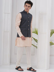 Elevate your ethnic wardrobe with this ready-to-wear three-piece kurta set—a balanced blend of tradition, comfort, and style. Crafted from breathable cotton poplin fabric, the set includes a printed kurta, matching pyjama, and a complementary Nehru jacket designed to complete the look effortlessly.