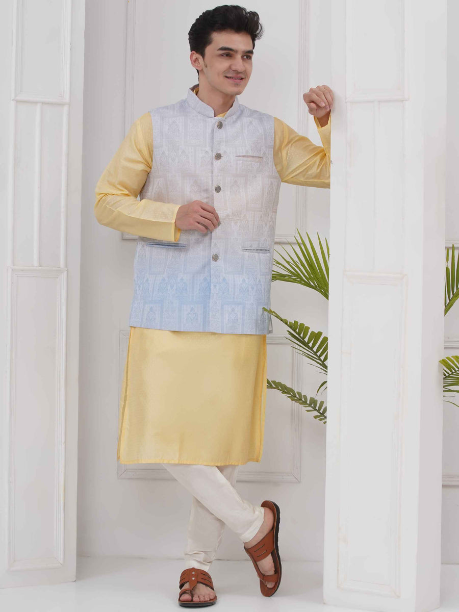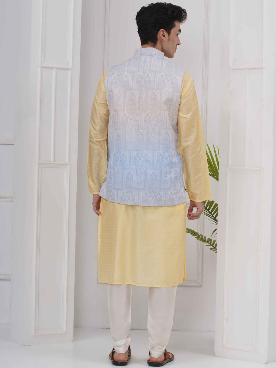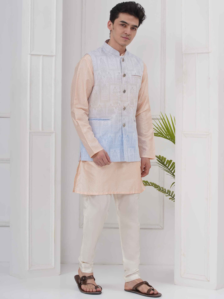 Mens Readymade Cotton Popline Print Kurta And Pyjama with Nehru Jacket