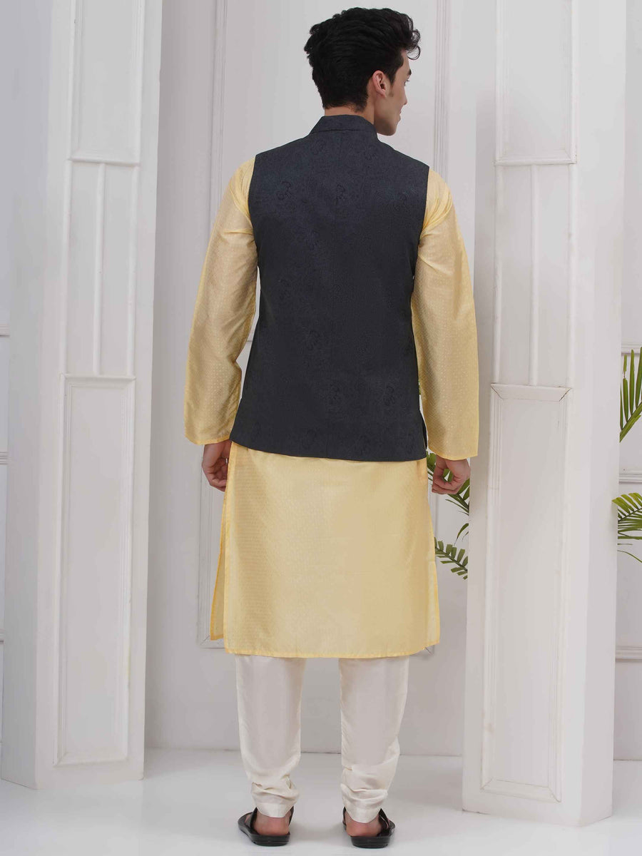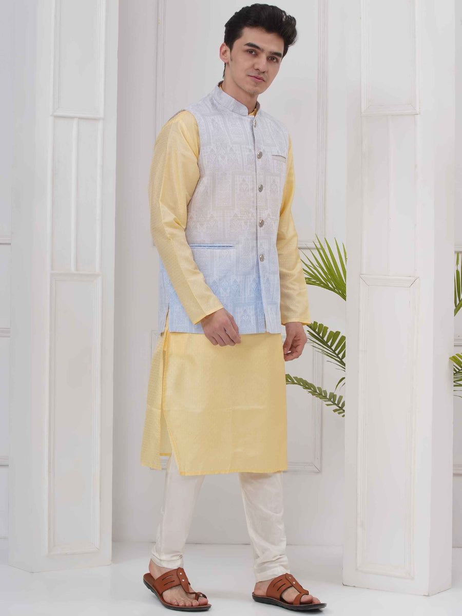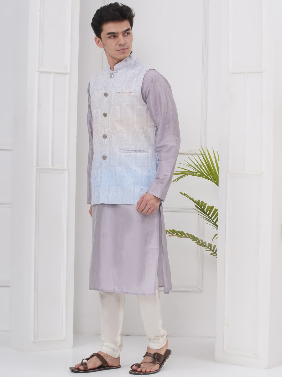Mens Readymade Cotton Popline Print Kurta And Pyjama with Nehru Jacket