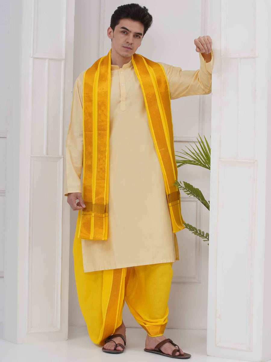 Mens Readymade Kurta DhotiPant With Angavastram Set
