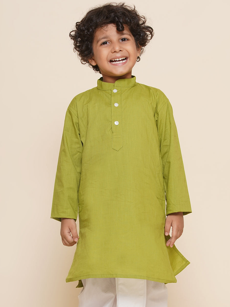 Boys Green Colour Cotton Kurta