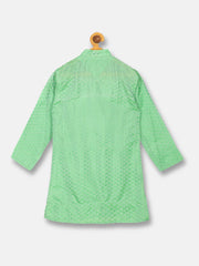 Every garment crafted at sethukrishna is inspired by our indian tradition. Boys art silk kurta features a mandarin collar, straight hem and side pockets. Pair it with our designer dhoti pants to an expression of refined and effortless way of dressing.