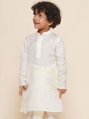 Boys Off White Colour Art Silk Kurta