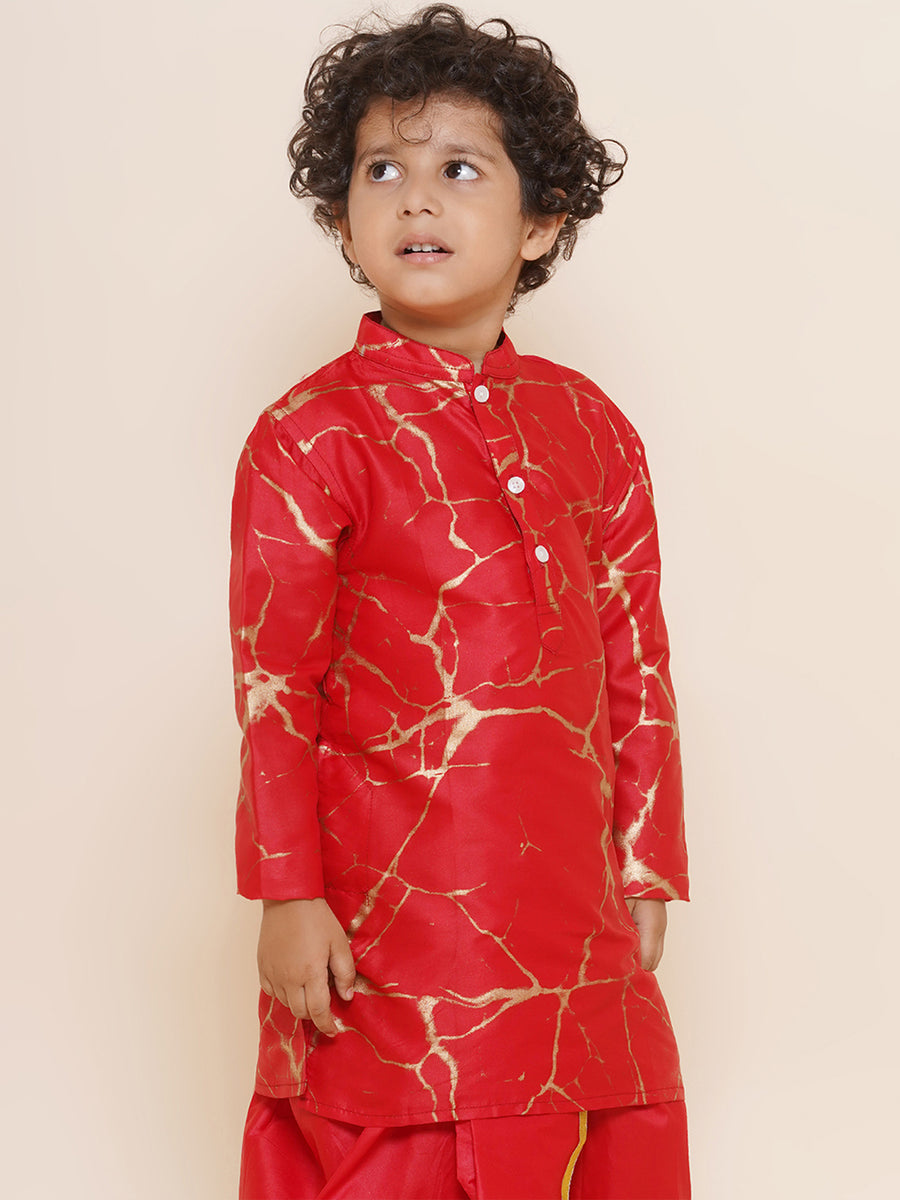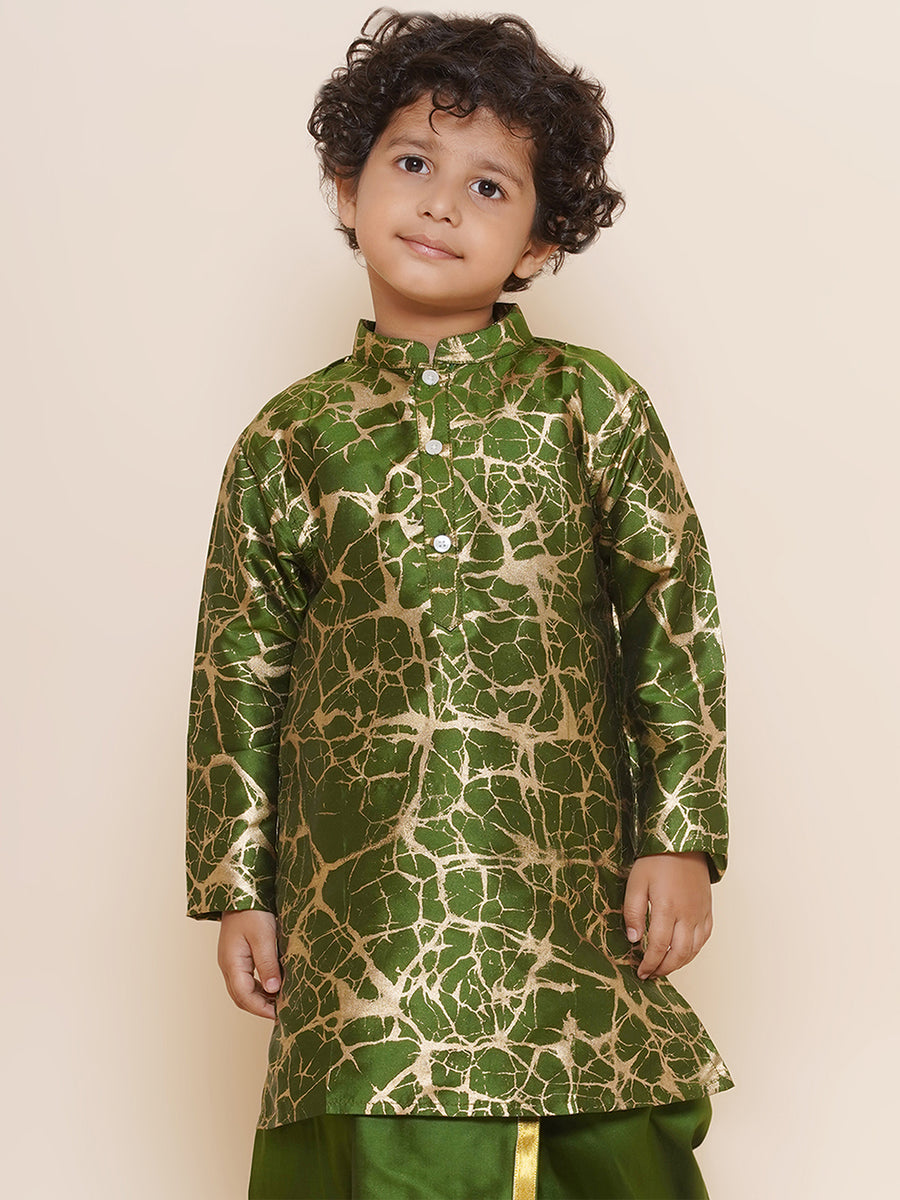 This Boys Printed Kurta is the perfect choice for an array of occasions. With a Mandarin collar and full-sleeve design, this Kurta ensures comfort and style. The breathable fabric is ideal for any season.