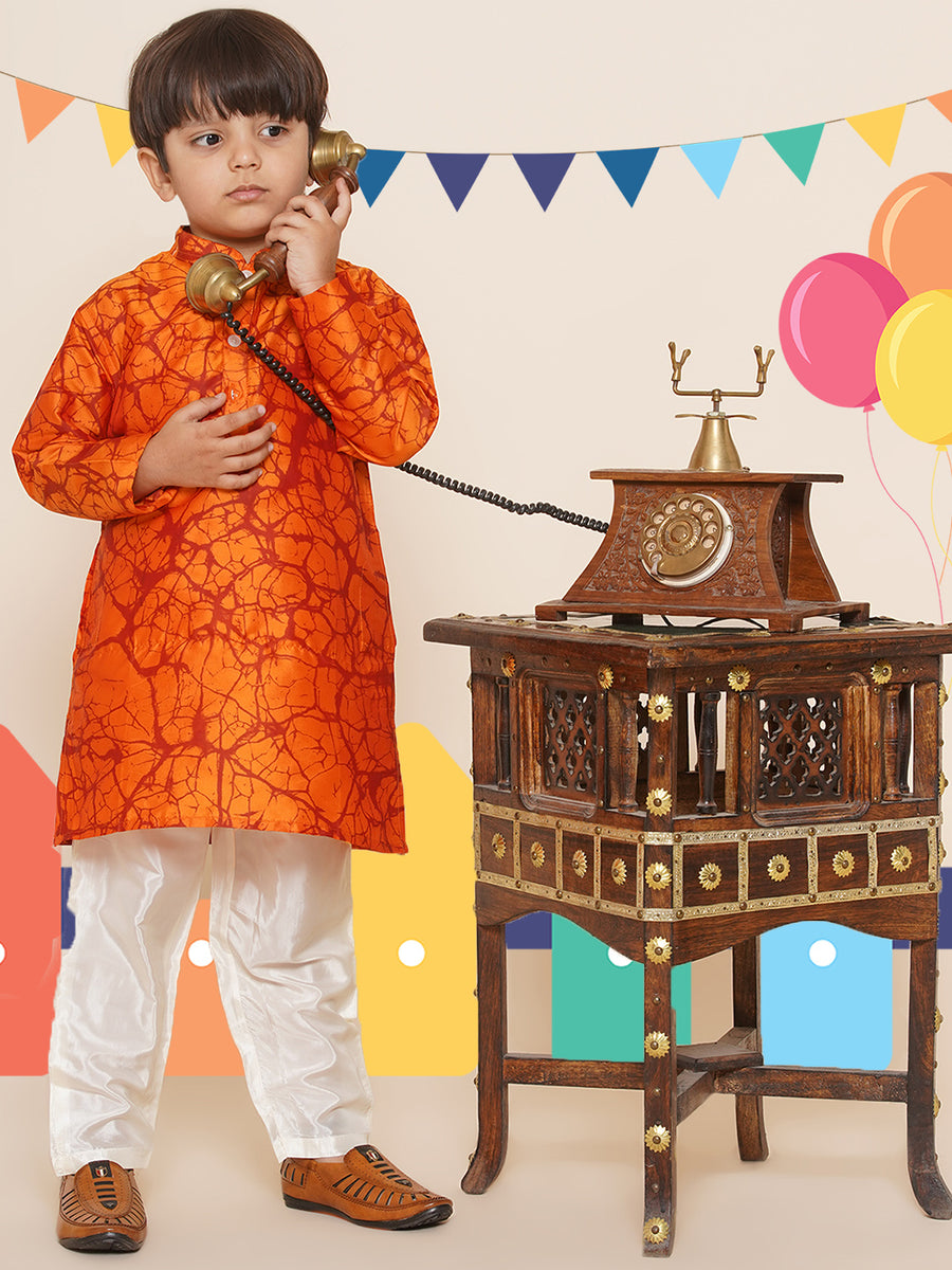 This Boys Printed Kurta is perfect for any special occasion. Perfectly tailored from premium fabric, it features a mandarin collar, full sleeves and attractive prints. Its high-quality construction provides superior comfort and all-day durability.