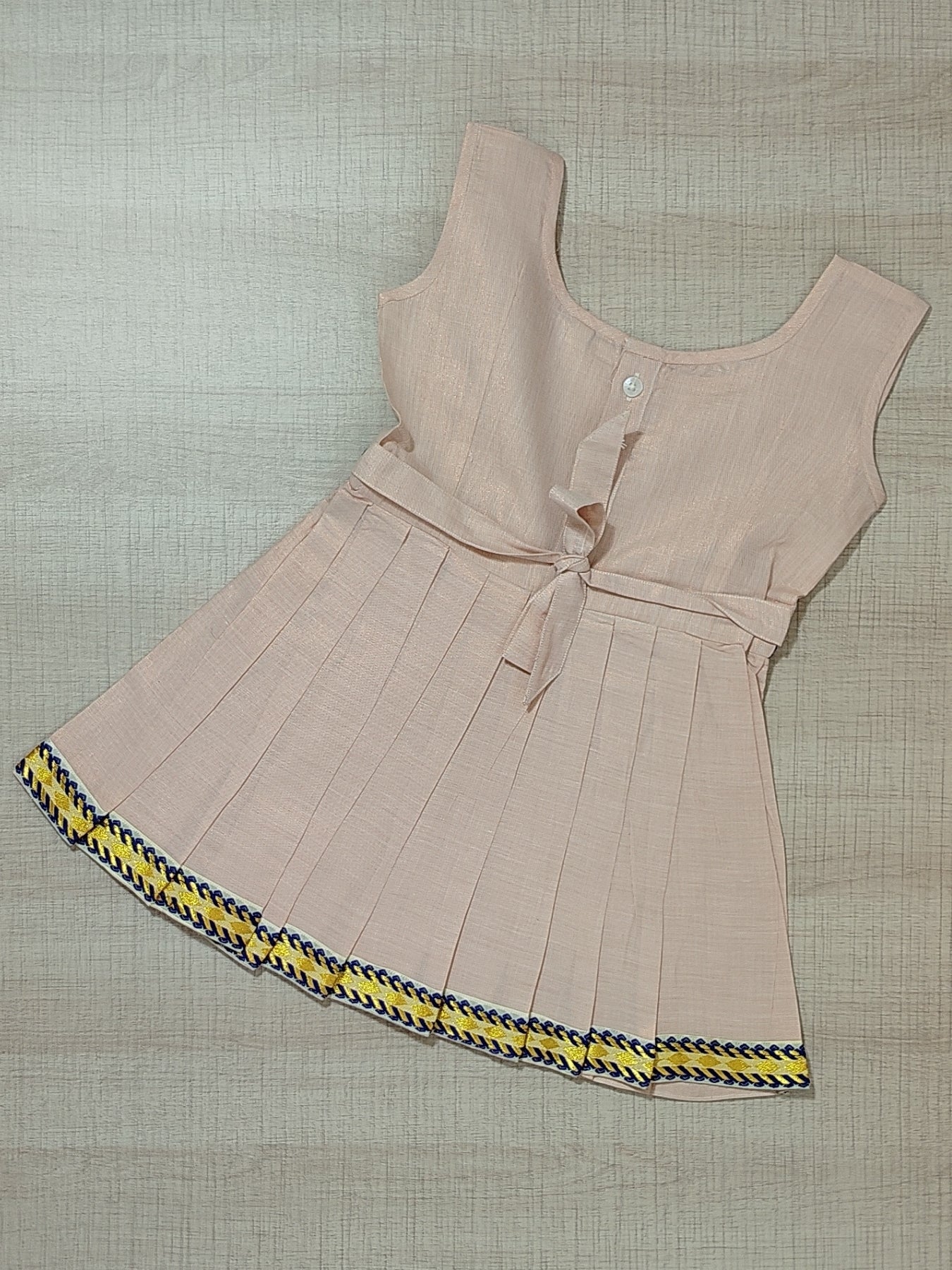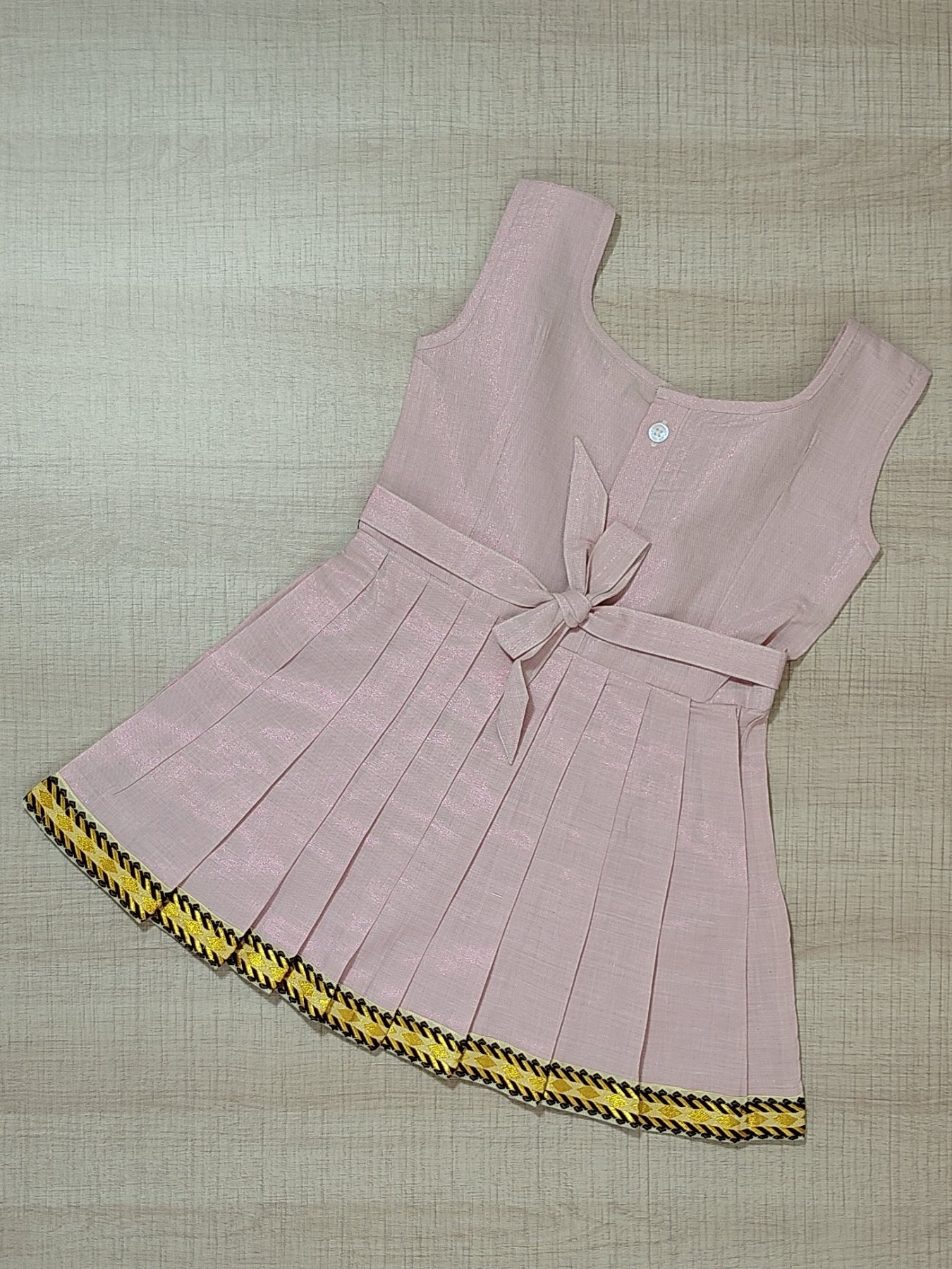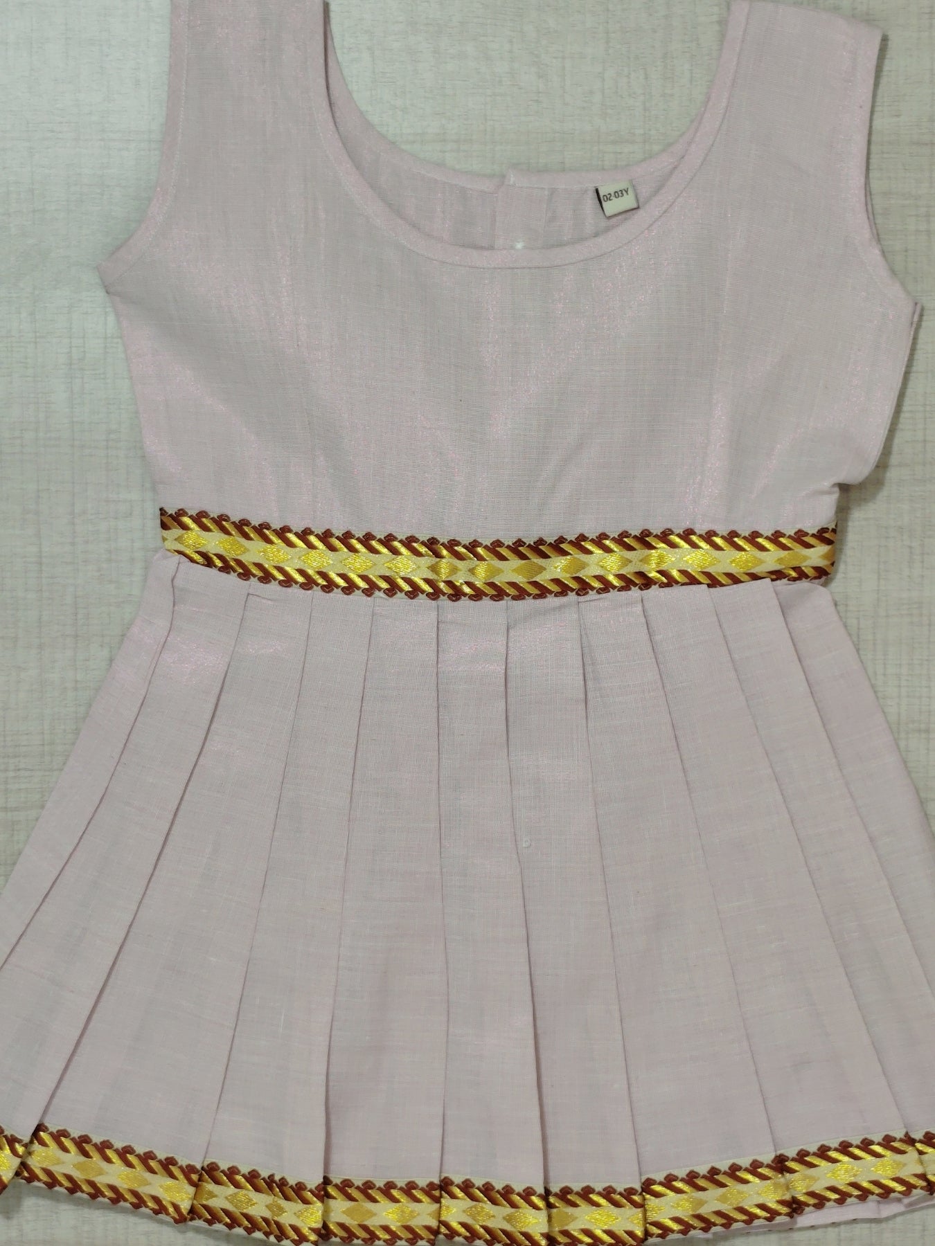 A classic pavadai set with a modern twist—literally. This solid color ethnic ensemble is designed for comfort and charm, with adjustable shoulder knots for the perfect fit. The flared skirt adds that twirl-worthy touch little ones love.