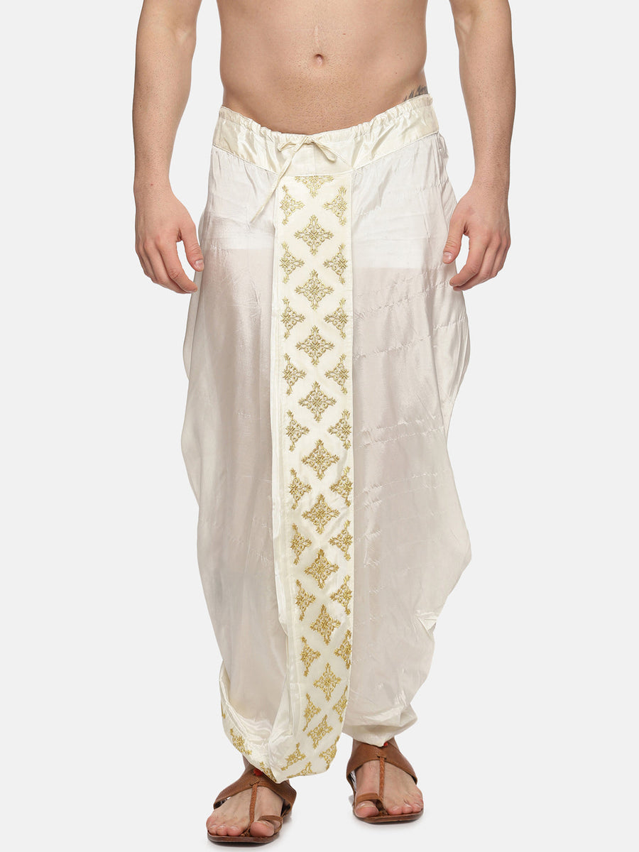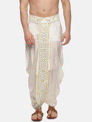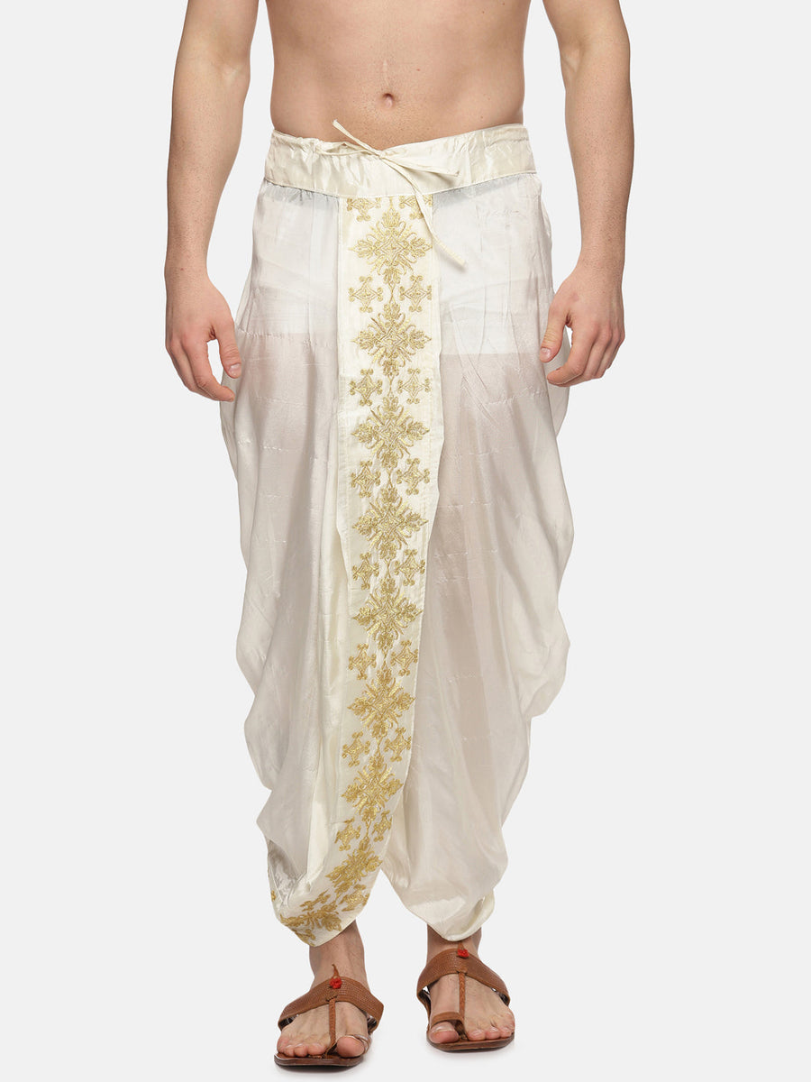 Men Art Silk Cream Colour Embroidery Dhoti Pant