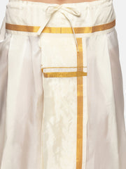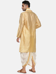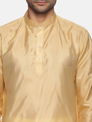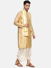 Men Biscuit Colour Art Silk Kurta Dhoti Pant Set