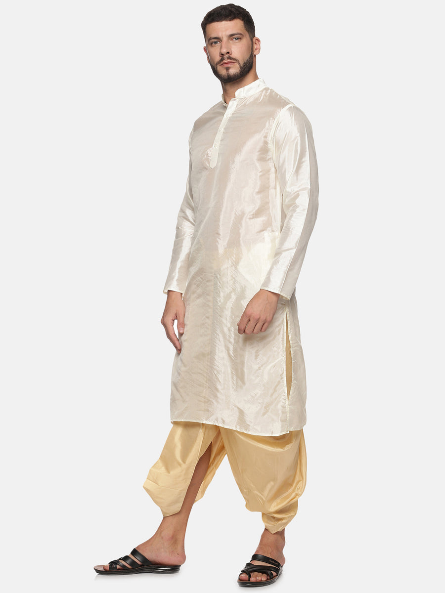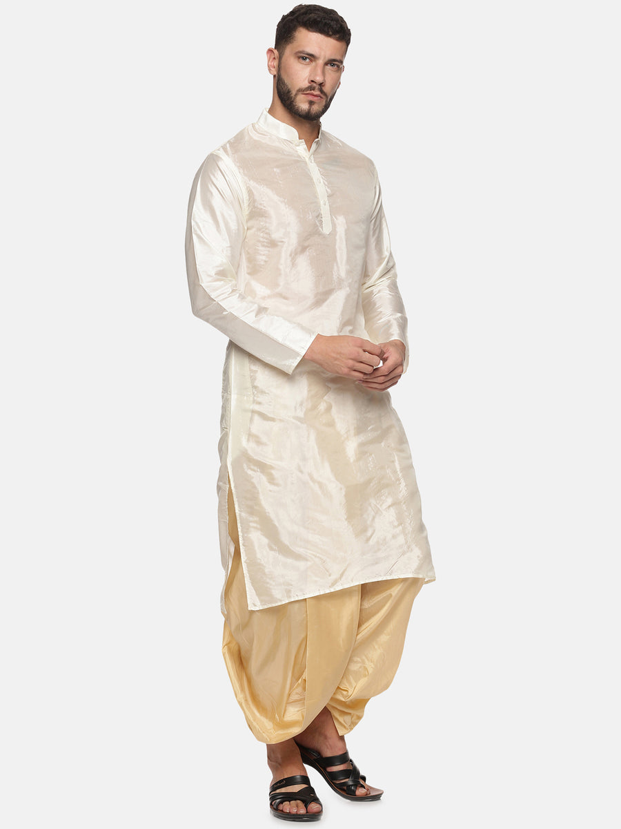 Men Solid Colour Art Silk Kurta Dhoti Pant Set