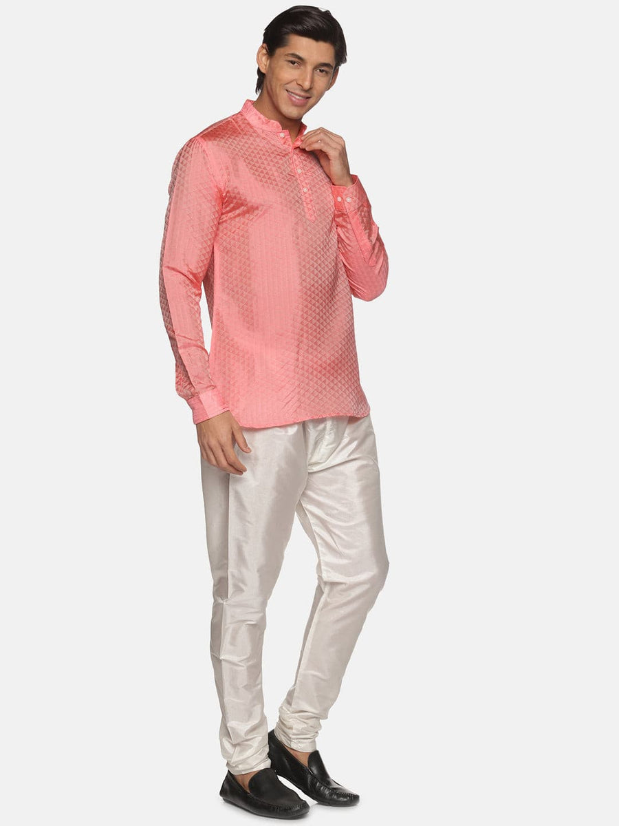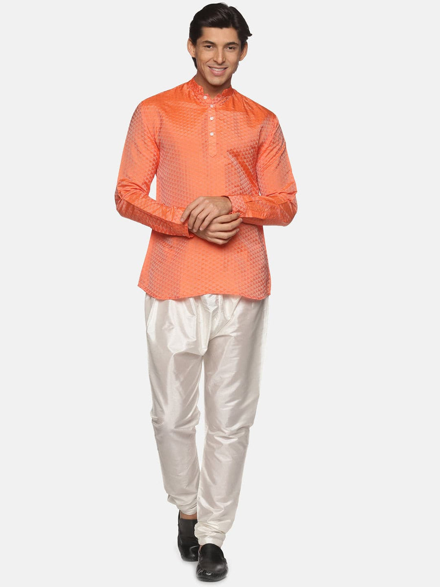 Men Art Silk Self Design Solid Colour Kurta Pyjama Set