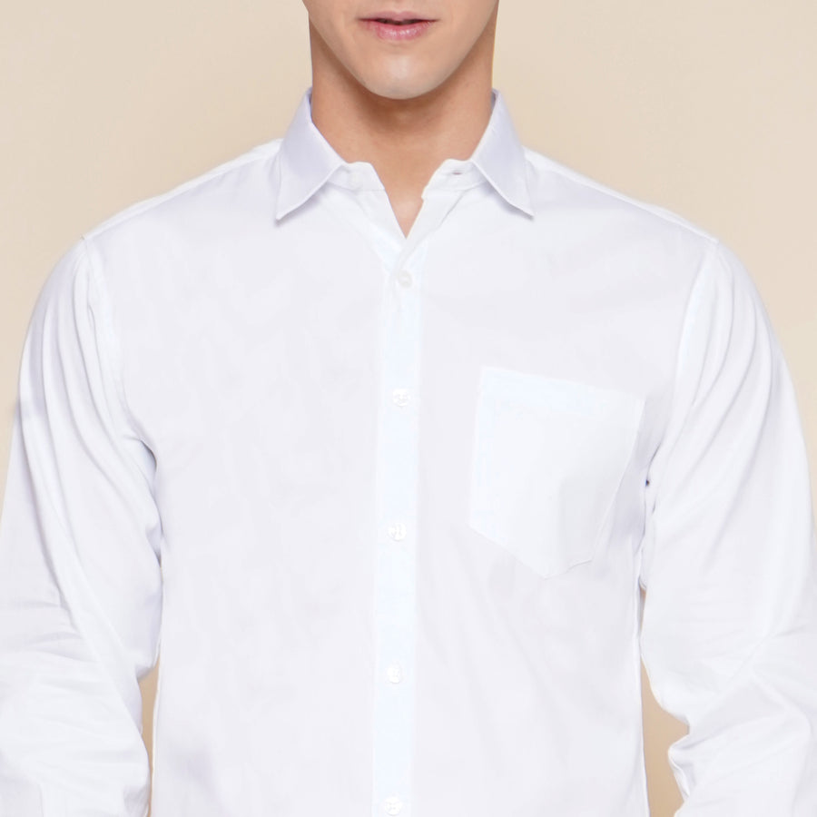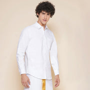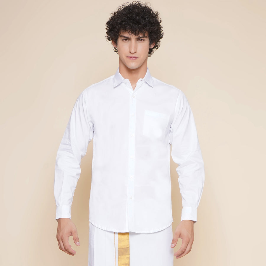 This Men Cotton White Full Sleeve Shirt is designed to make you look trendy and stylish. Its lightweight premium cotton fabric provides a comfortable and breathable fit all day. The shirt features a chest pocket, adjustable cuff and a curved hem for an absolute look. Make it traditional while pairing with modern Indian ethnic wear like readymade dhoti with pocket and present yourself to any cultural occasion.