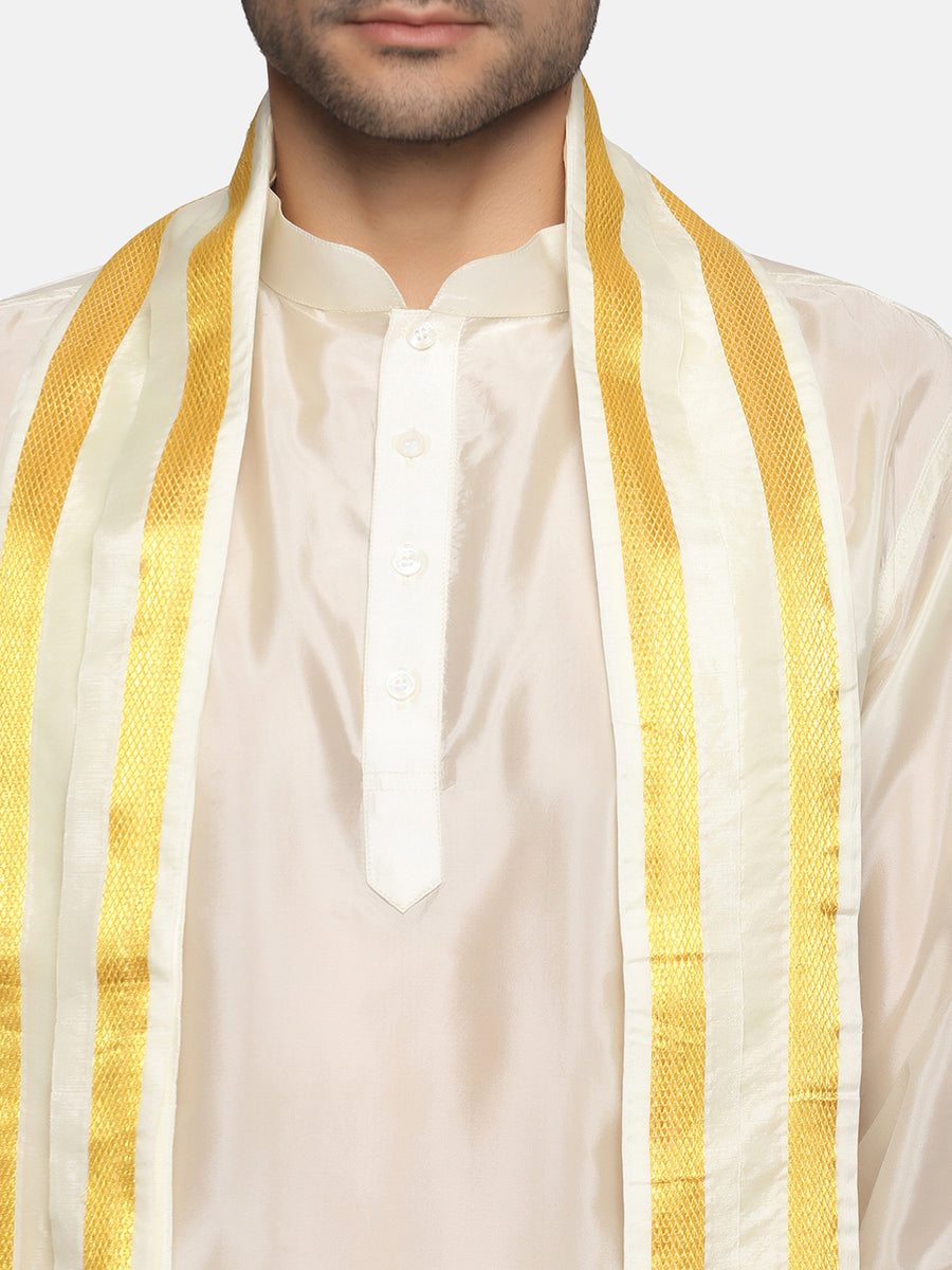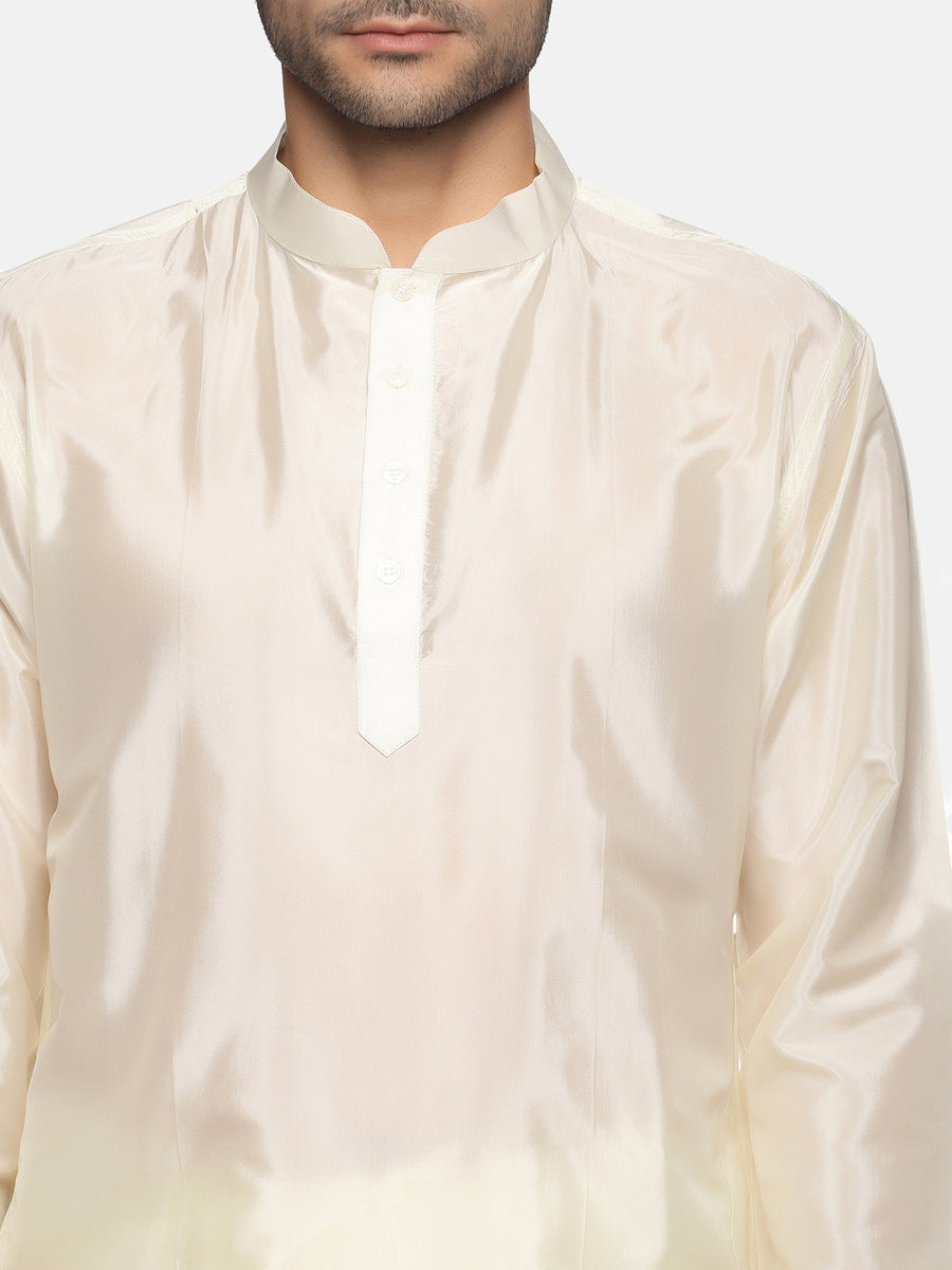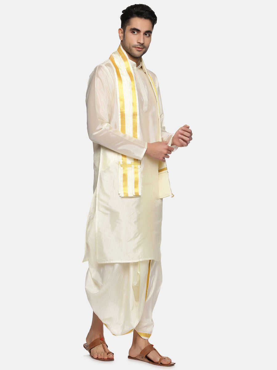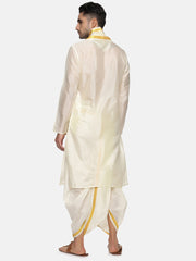 Men Cream Colour Art Silk Kurta Dhoti Pant Set