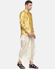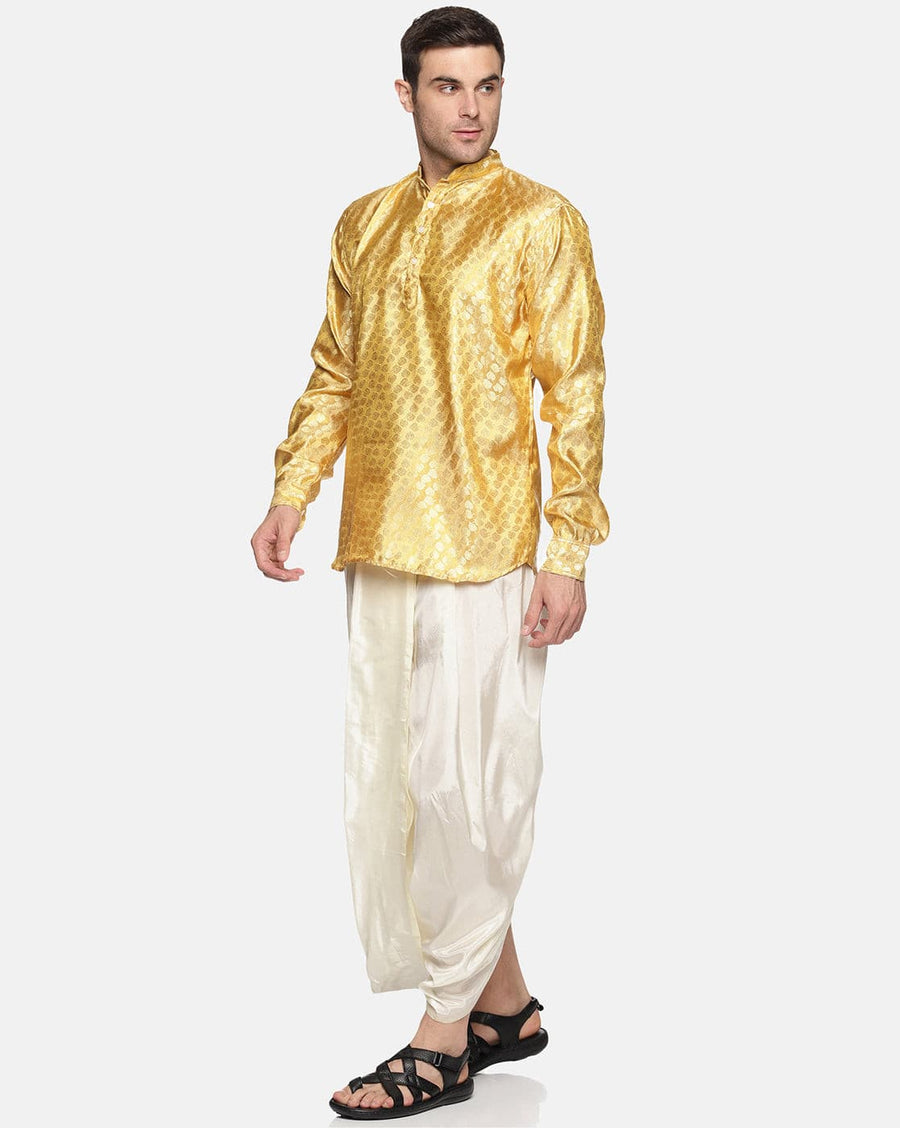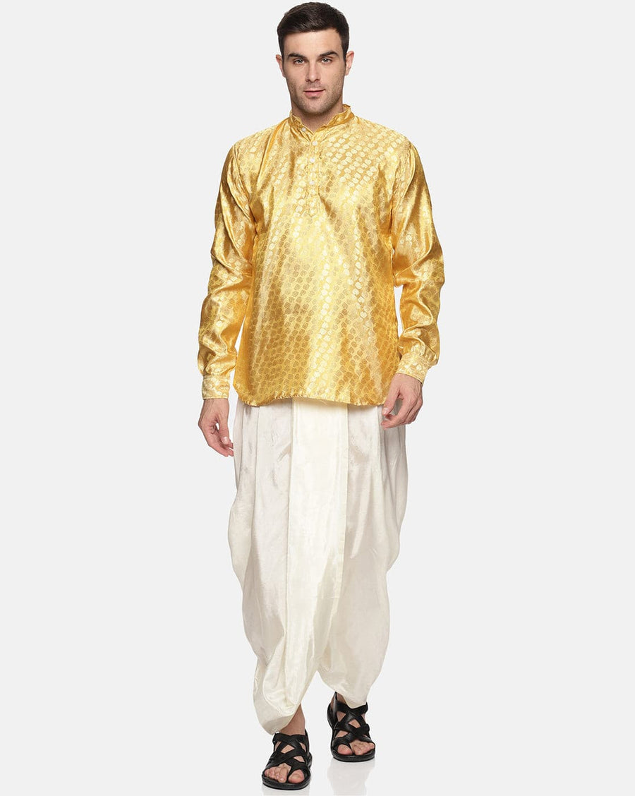 Men Gold Colour Polyester Kurta Dhoti Pant Set