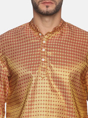 Men Gold Colour Polyester Kurta Dhoti Pant Set