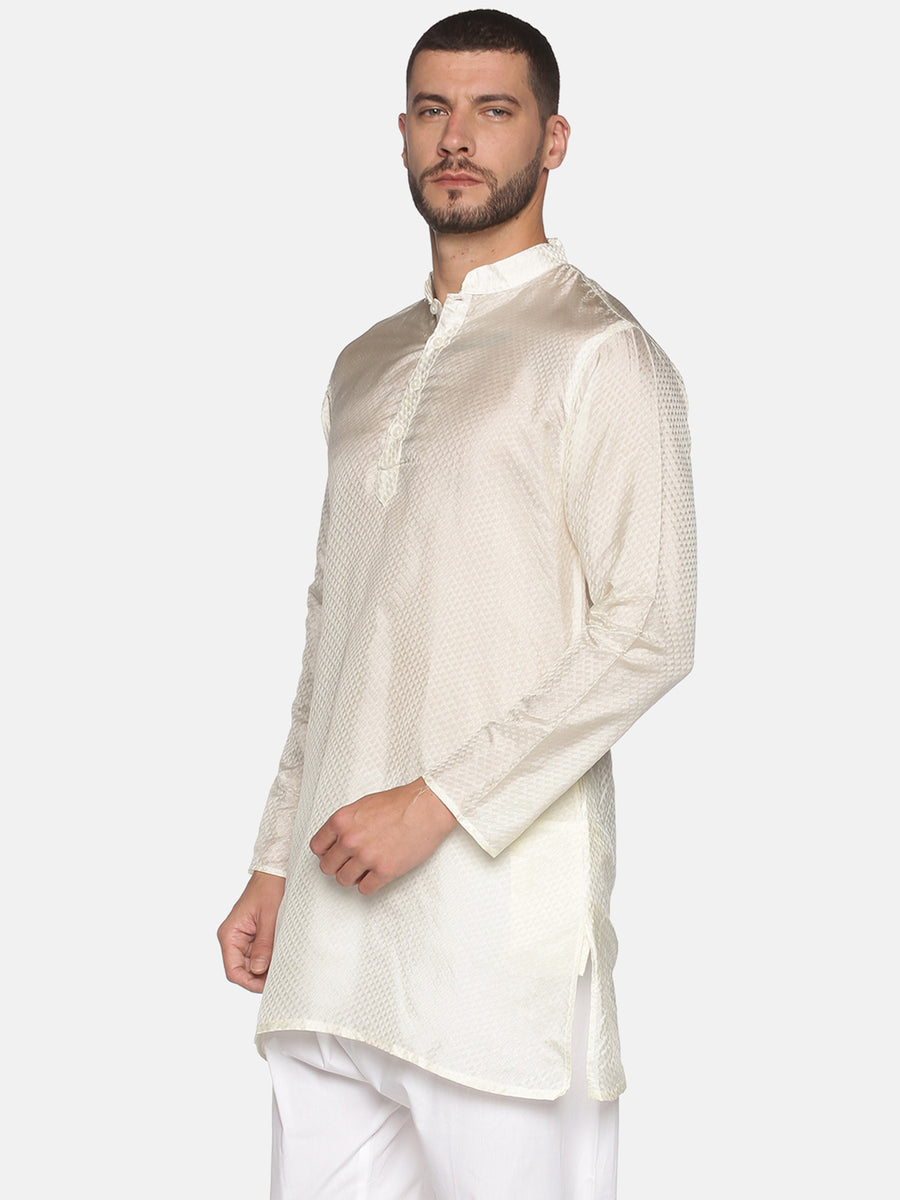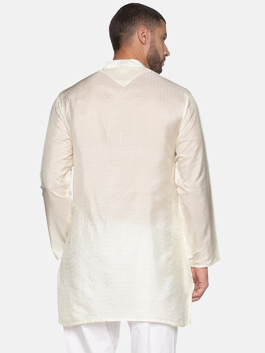 Sethukrishna men regular fit kurta features mandarin collar, full sleeves, side pockets and straight hem. This ethnic garment is suitable to be worn at a wedding or festive occasions when paired with traditional dhoti pant or pyjama.