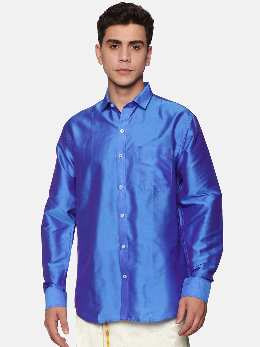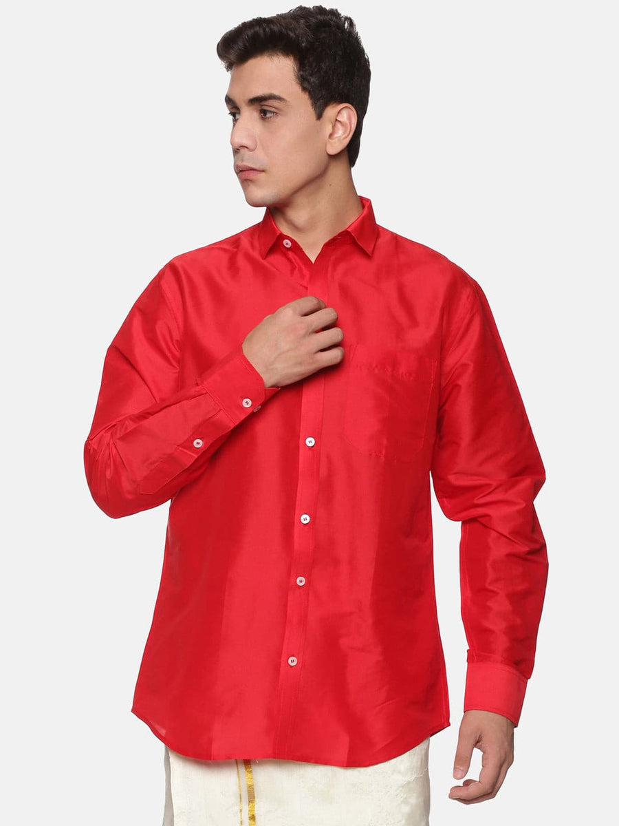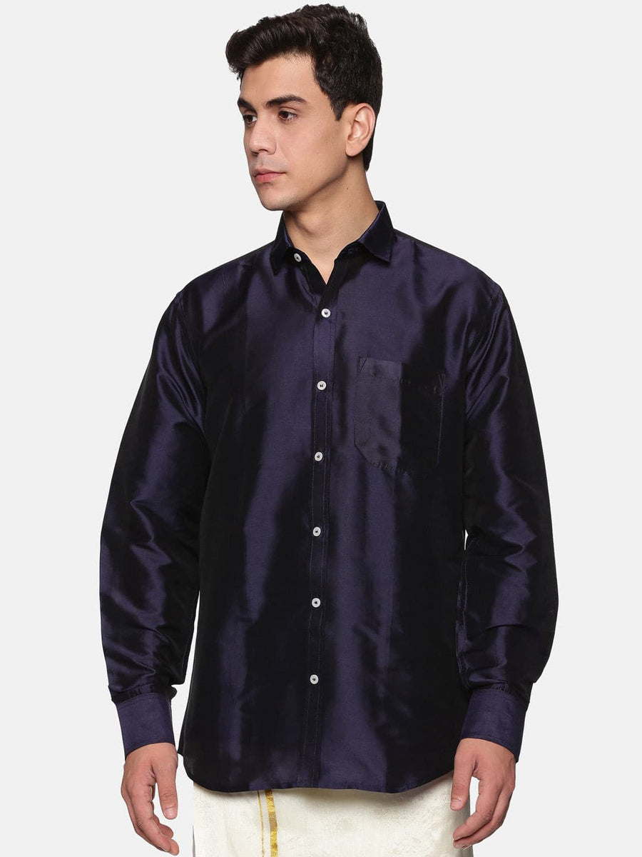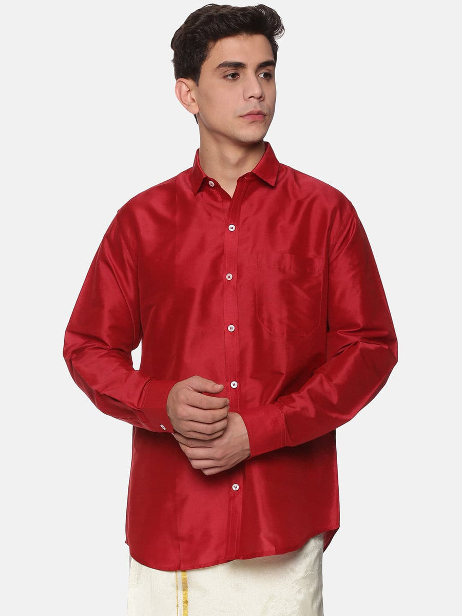 Sethukrishna silk finish ethnic shirt is the traditional way of displaying luxury and finesse in style. Team it up with a readymade pocket dhoti in silk blend or cotton along with sandals for a complete Indian traditional wear.