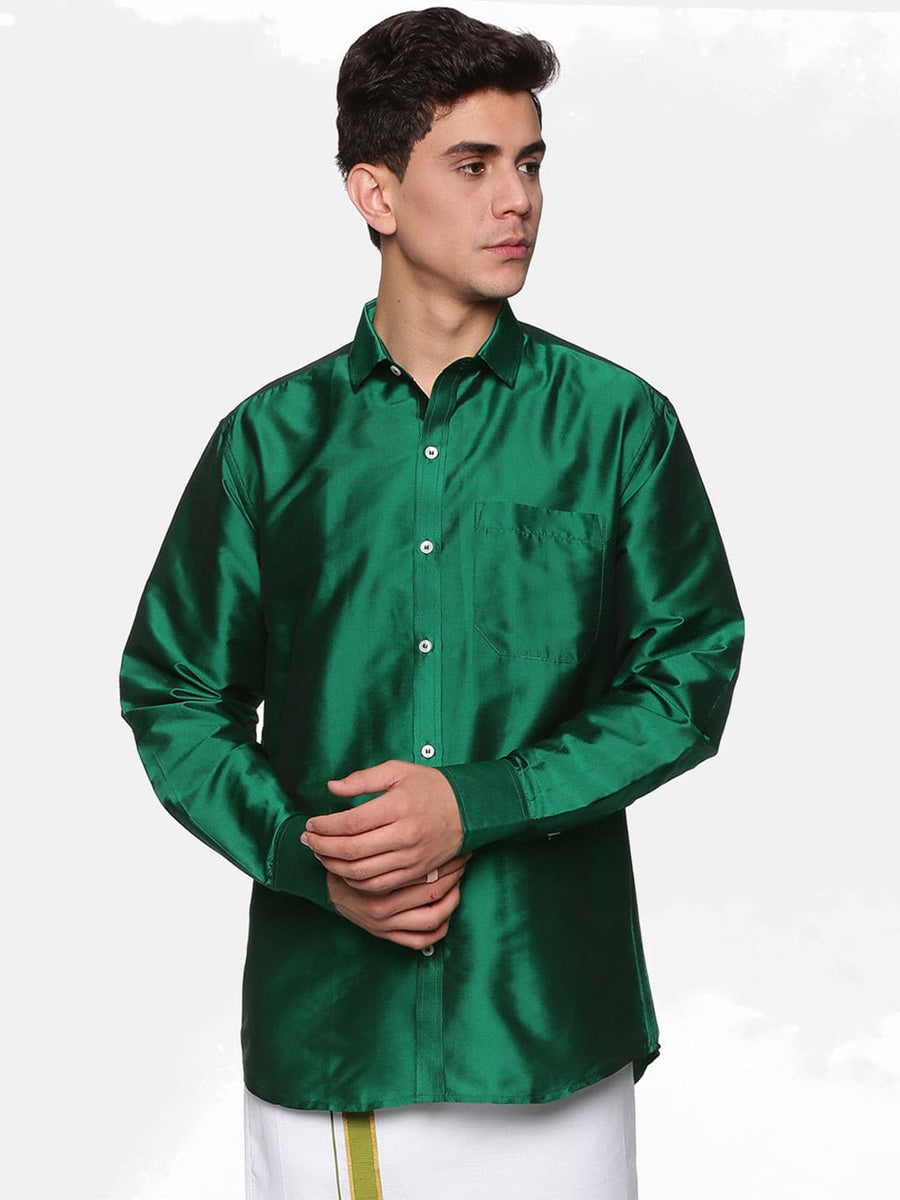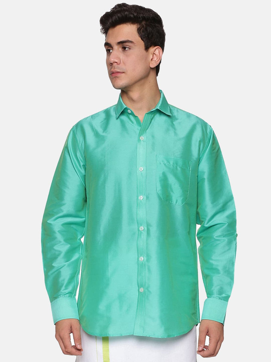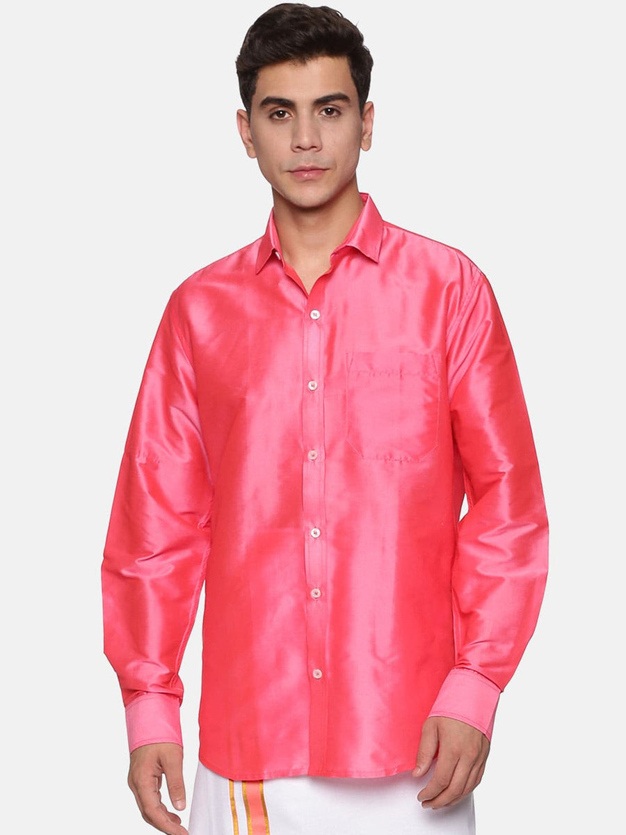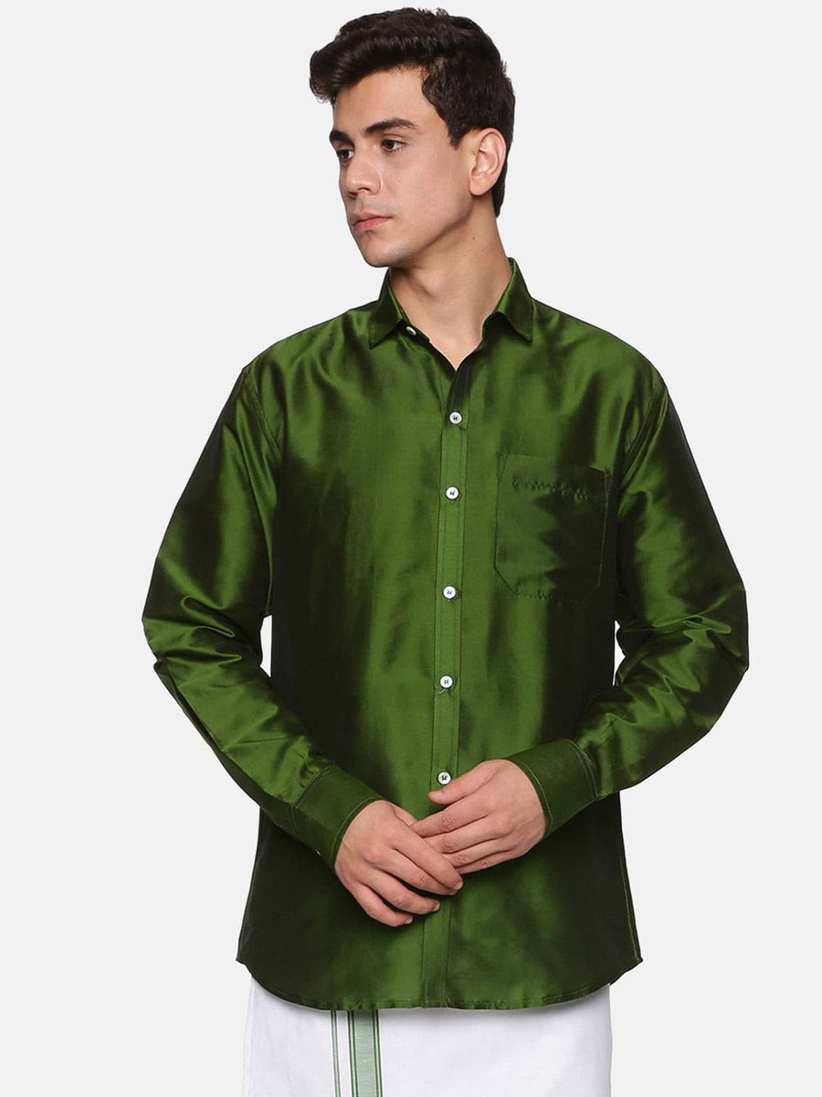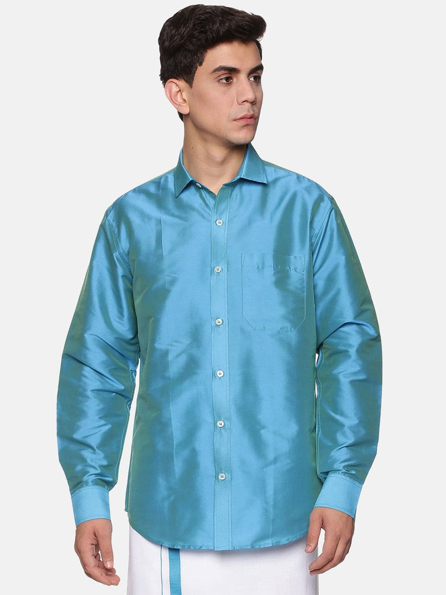 Sethukrishna silk finish ethnic shirt is the traditional way of displaying luxury and finesse in style. Team it up with a readymade pocket dhoti in silk blend or cotton along with sandals for a complete Indian traditional wear.
