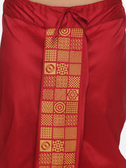 Men Maroon Colour Art Silk Kurta Dhoti Pant Set
