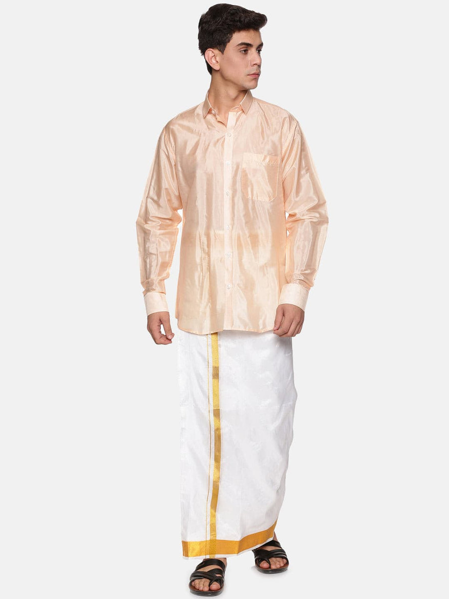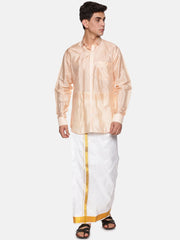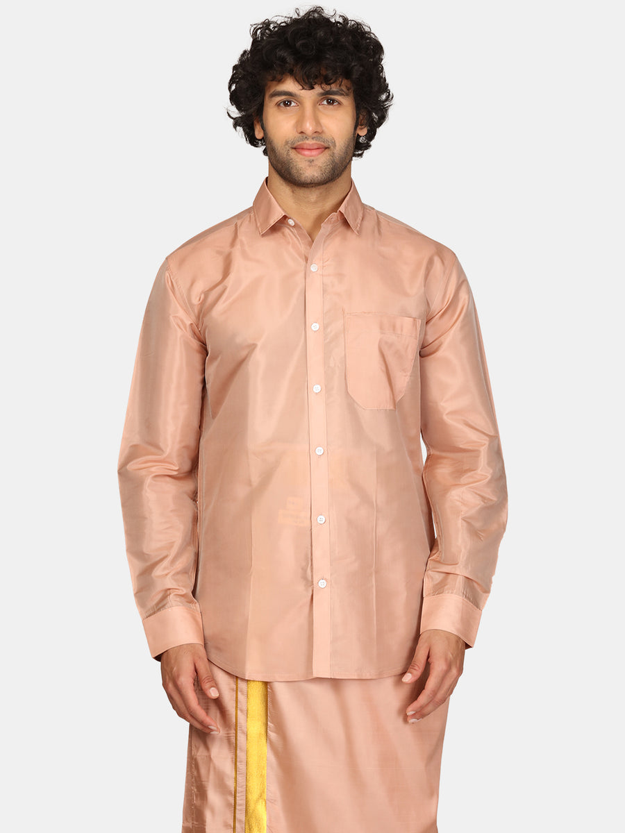Sethukrishna silk blend ethnic shirt is the traditional way of displaying luxury. Team it up with a readymade pocket dhoti in silk or silk blend for a complete indian traditional wear.