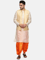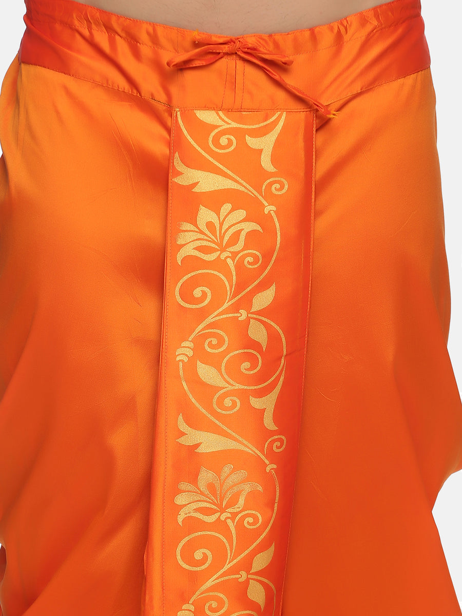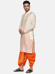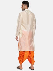 Men Orange Colour Art Silk Kurta Dhoti Pant Set