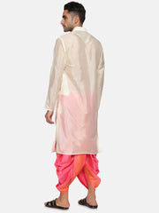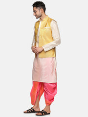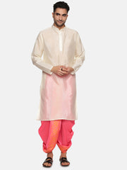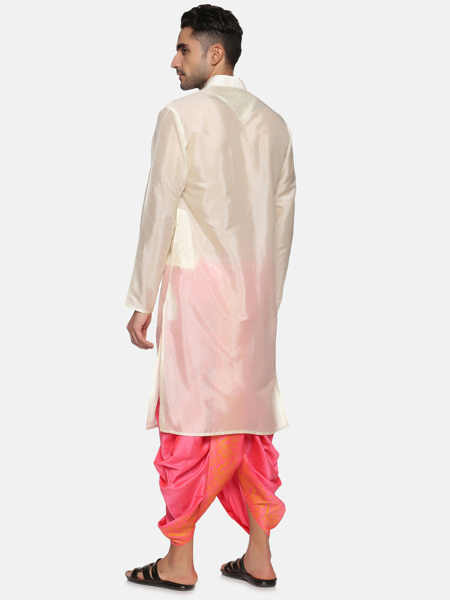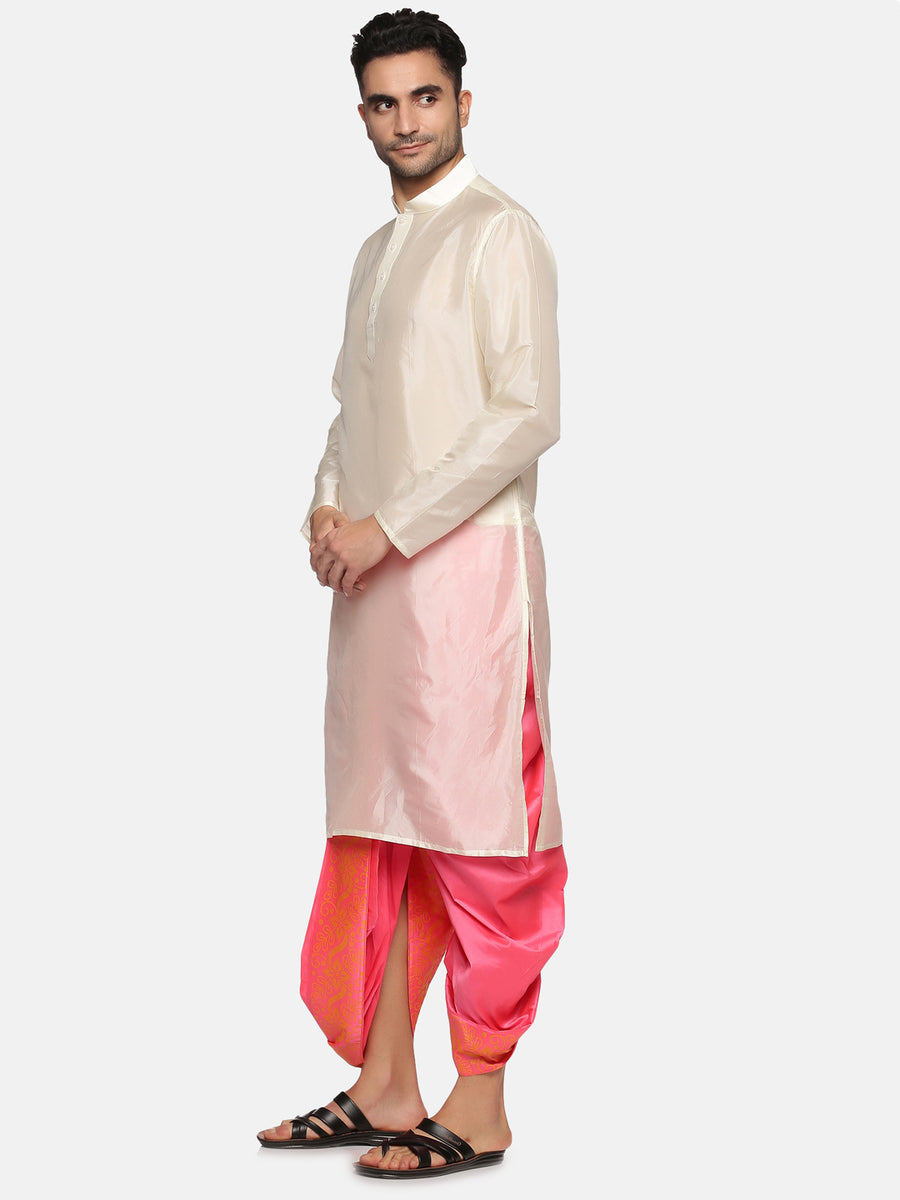 Men Pink Colour Art Silk Kurta Dhoti Pant Set