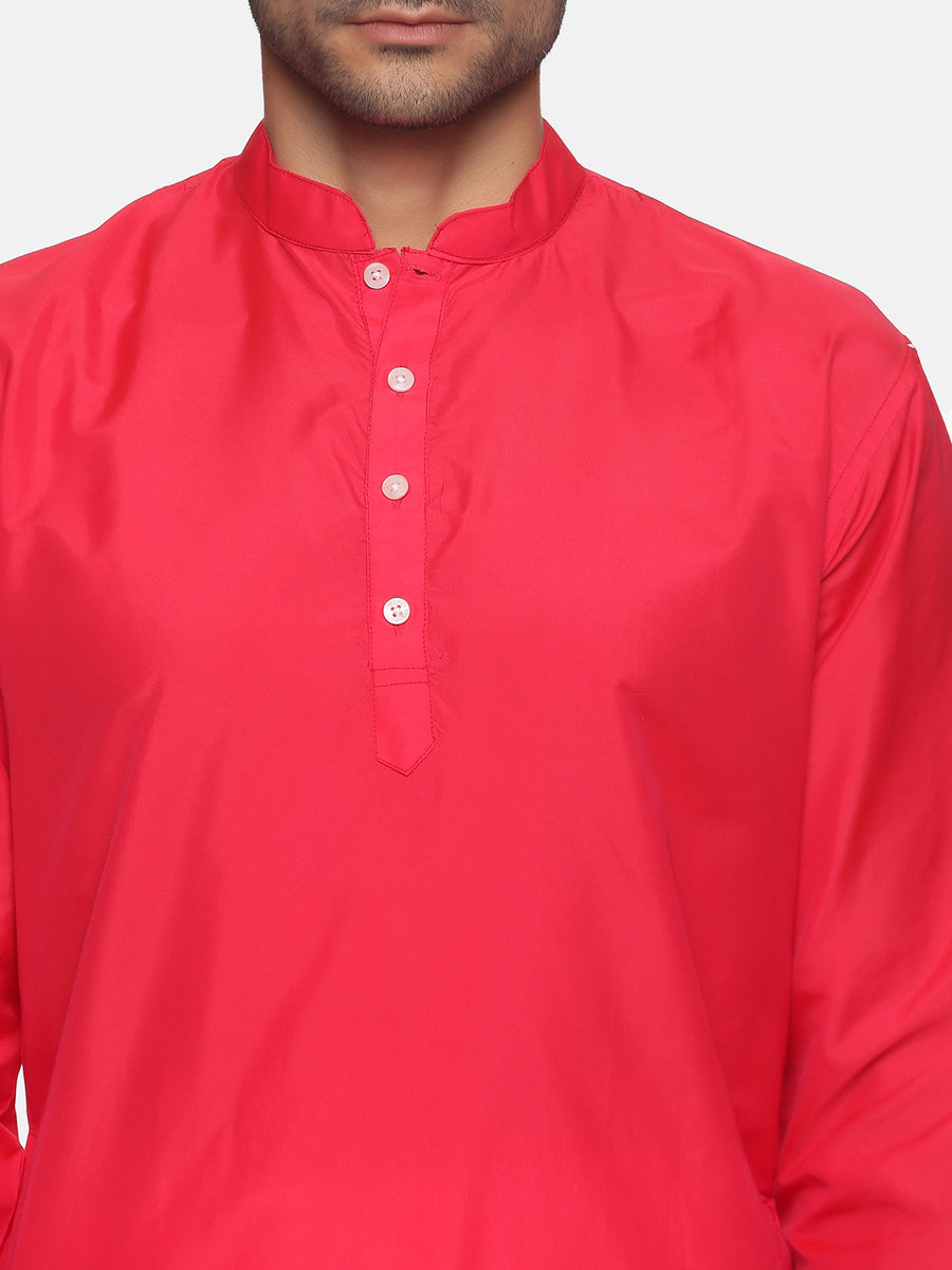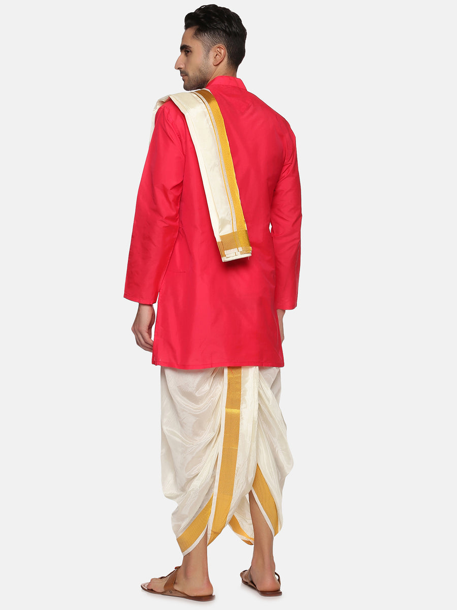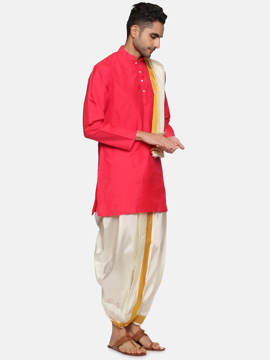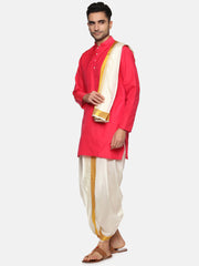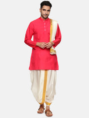Men Pink Colour Polyester Kurta Dhoti Pant Set
