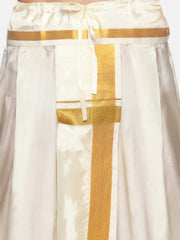 This kurta dhoti pant set for men is designed and crafted from sethukrishna. The kurta is made of peach polyester material featuring mandarin collar,full sleeves, side pockets and it is paired with cream polyester dothi pant with drawstring closure and gold jari. Choose to wear it for any traditional occasion in style.