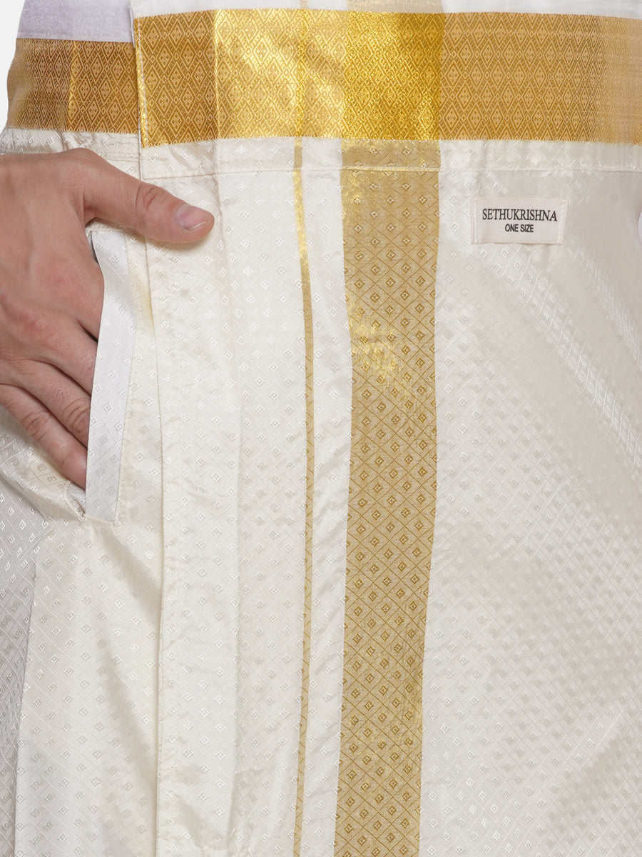 Men Self Design Art Silk Readymade Pocket Dhoti