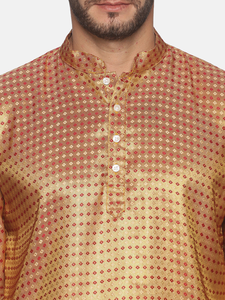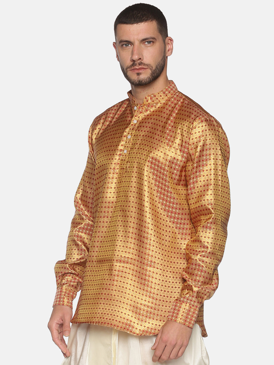 Wear This Glossy Polyester Kurta From Sethukrishna And Head To A Festive Occasion Or A Wedding. Team It Up With Pyjamas Or Patialas To Show Up Completely Ethnic.