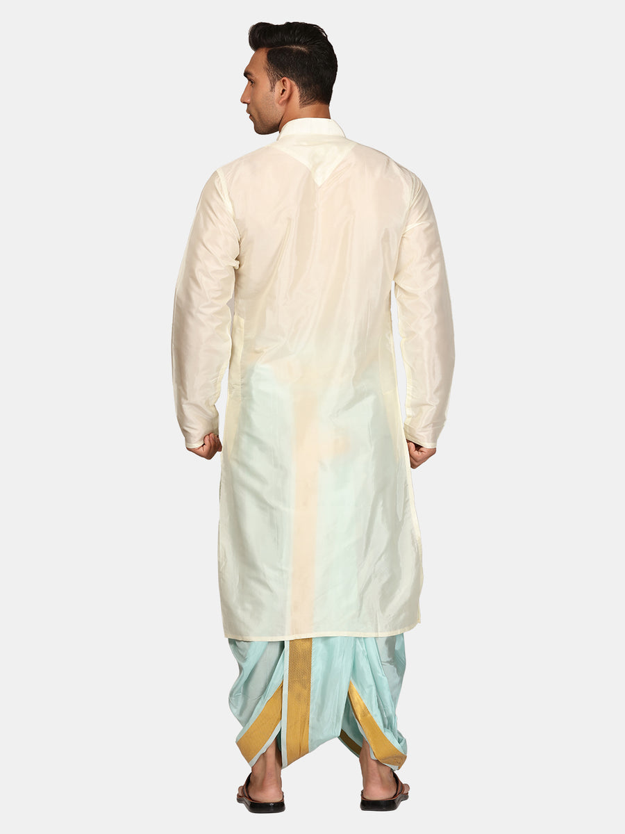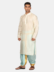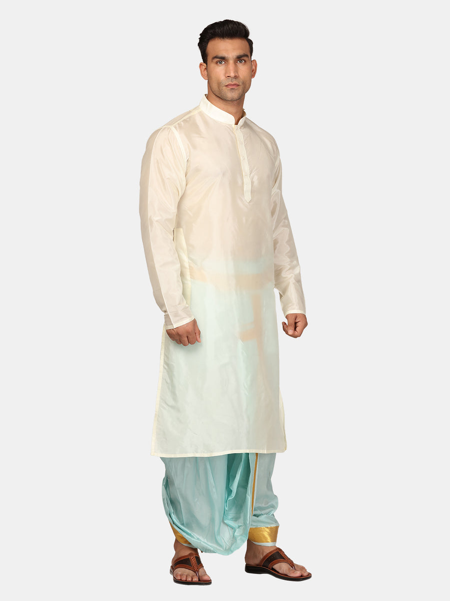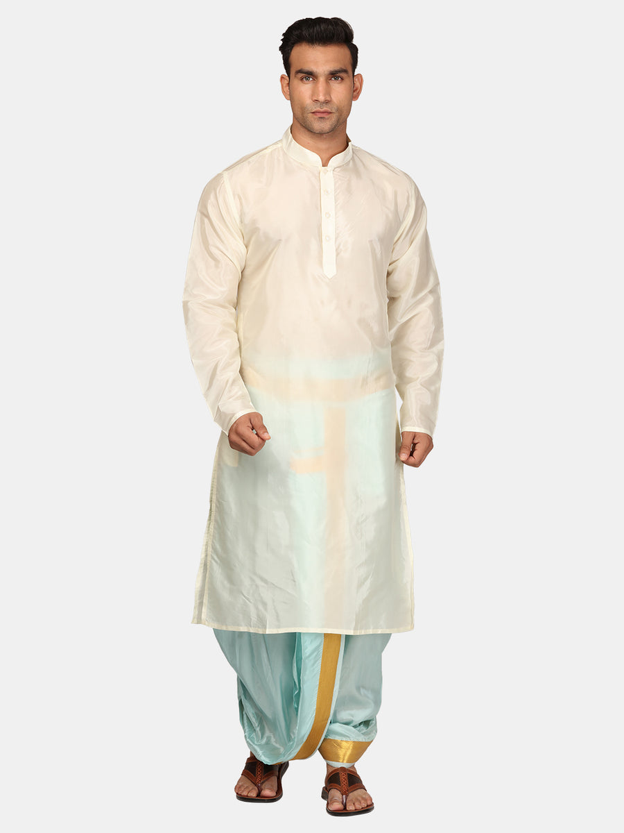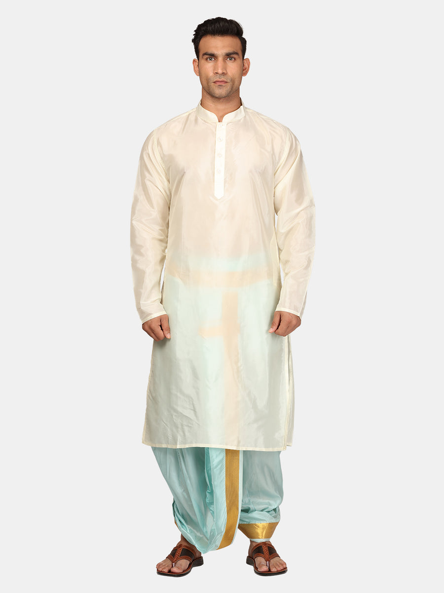 Stay timelessly stylish in this Sethukrishna Men Kurta dhotipant Set. Crafted from a solid cream kurta, this set also includes a solid colour dhoti pant, providing a classic look. Enjoy maximum comfort and unbeatable style with this traditional piece.