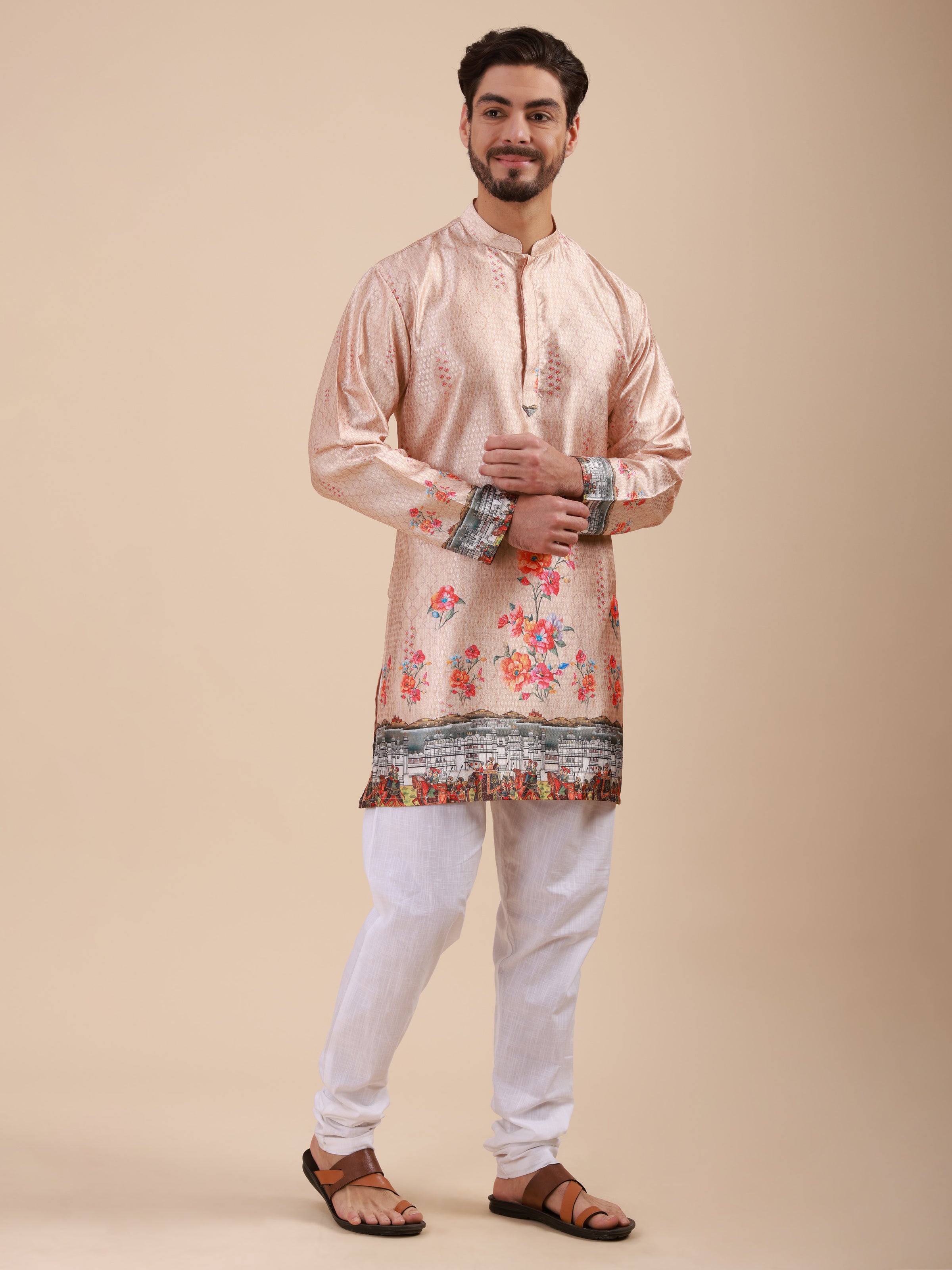 Men Floral Printed Woven Design Kurta & Pyjama Set