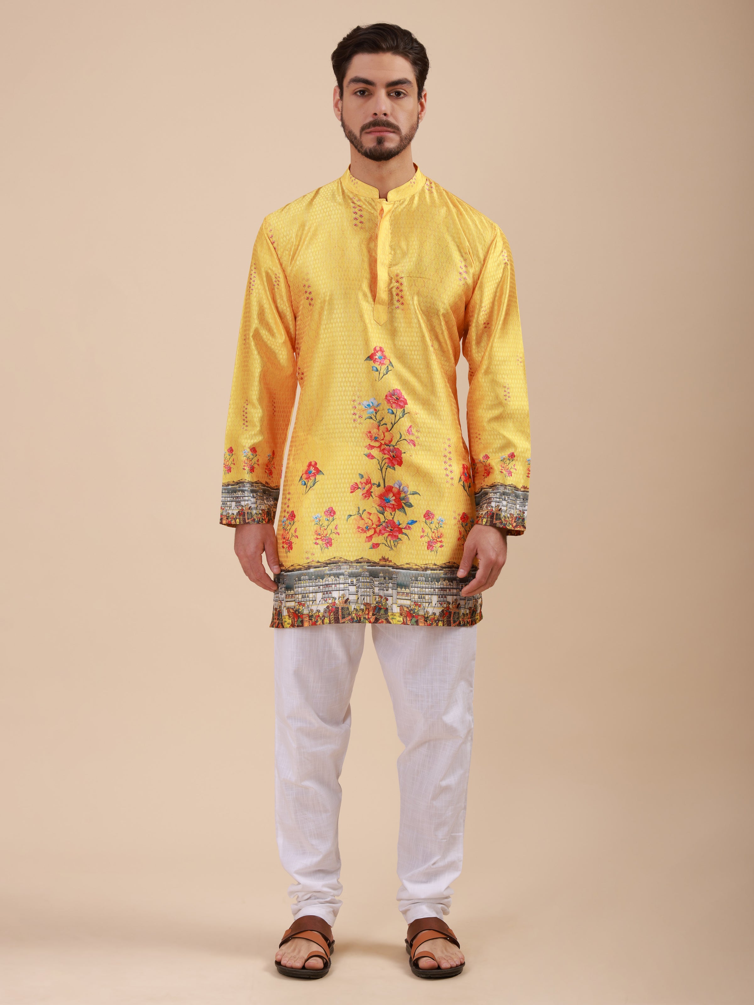 Men Solid Colour Art Silk Mandarin Collar Kurta