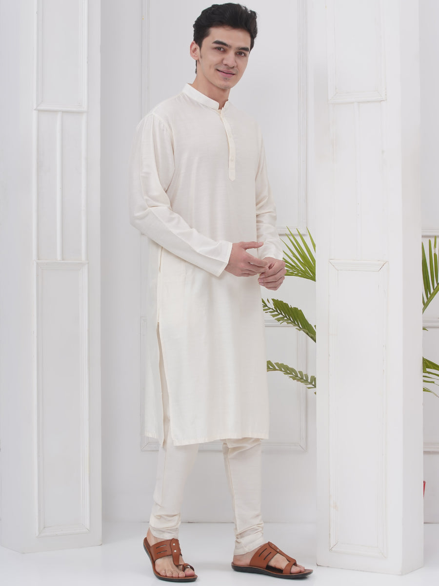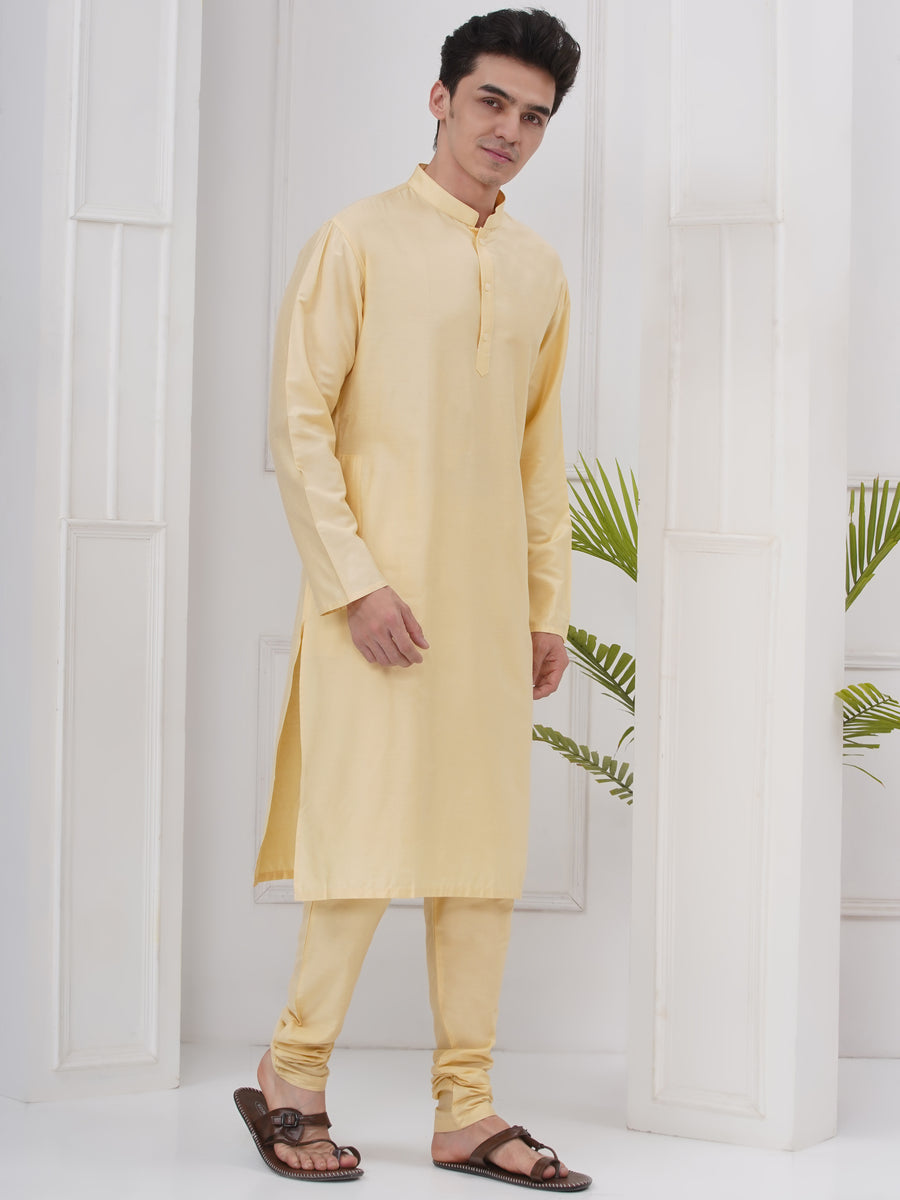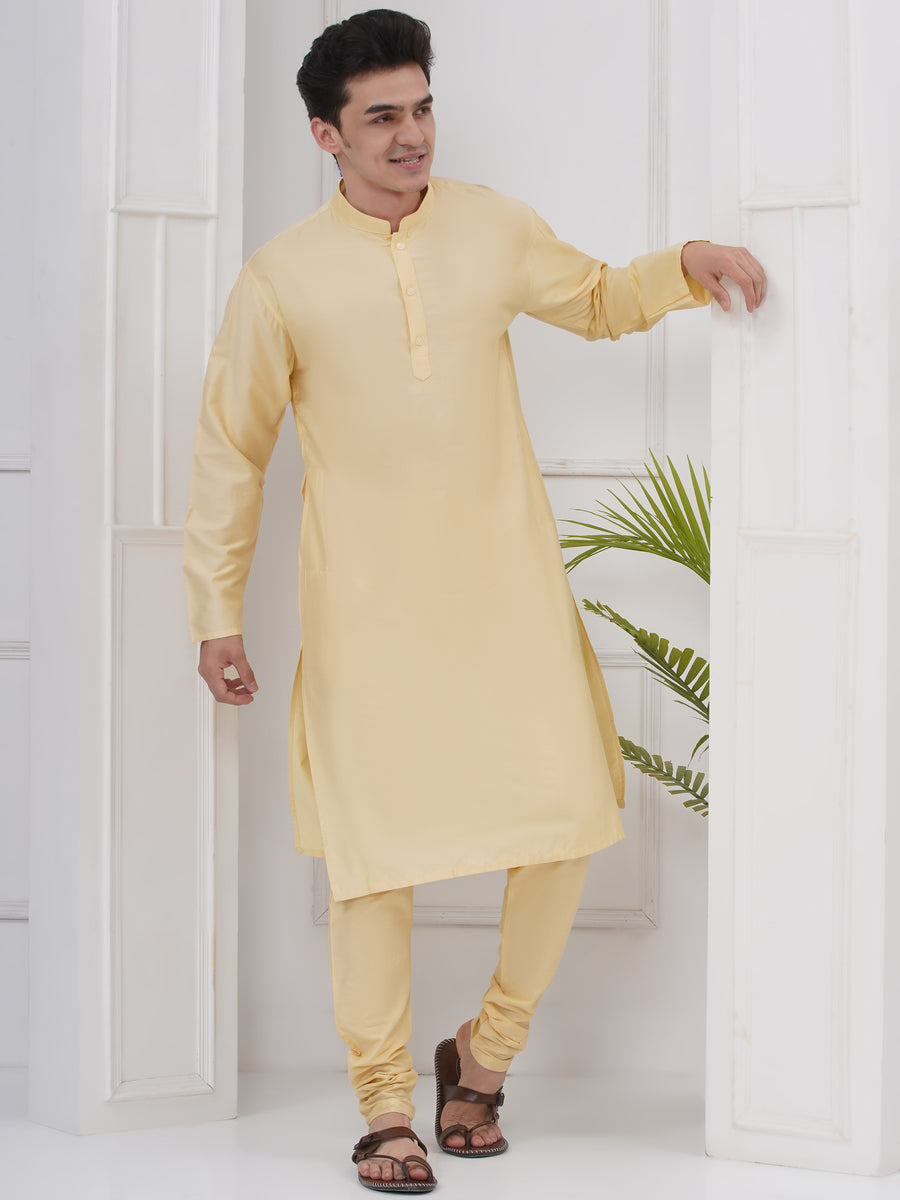 Mens Silk Cotton Kurta Pyjama Set