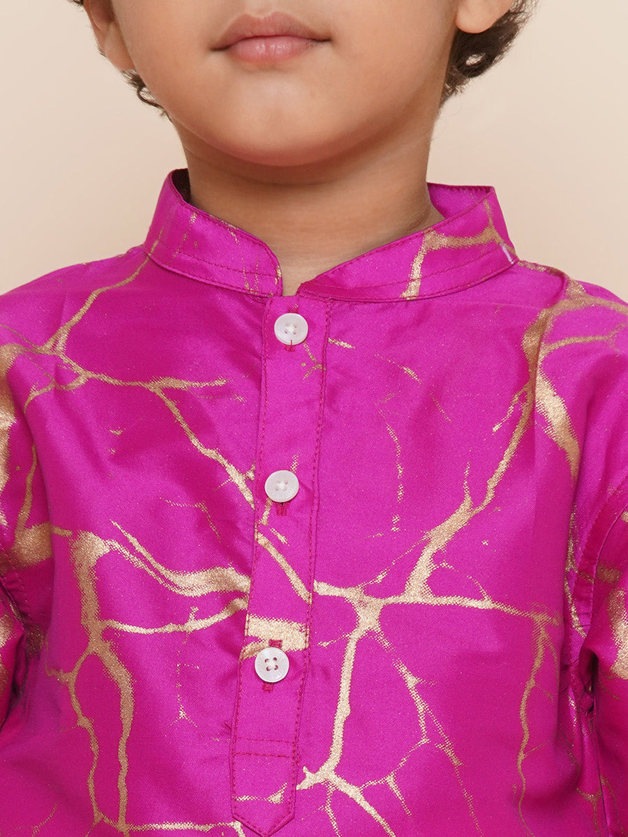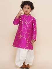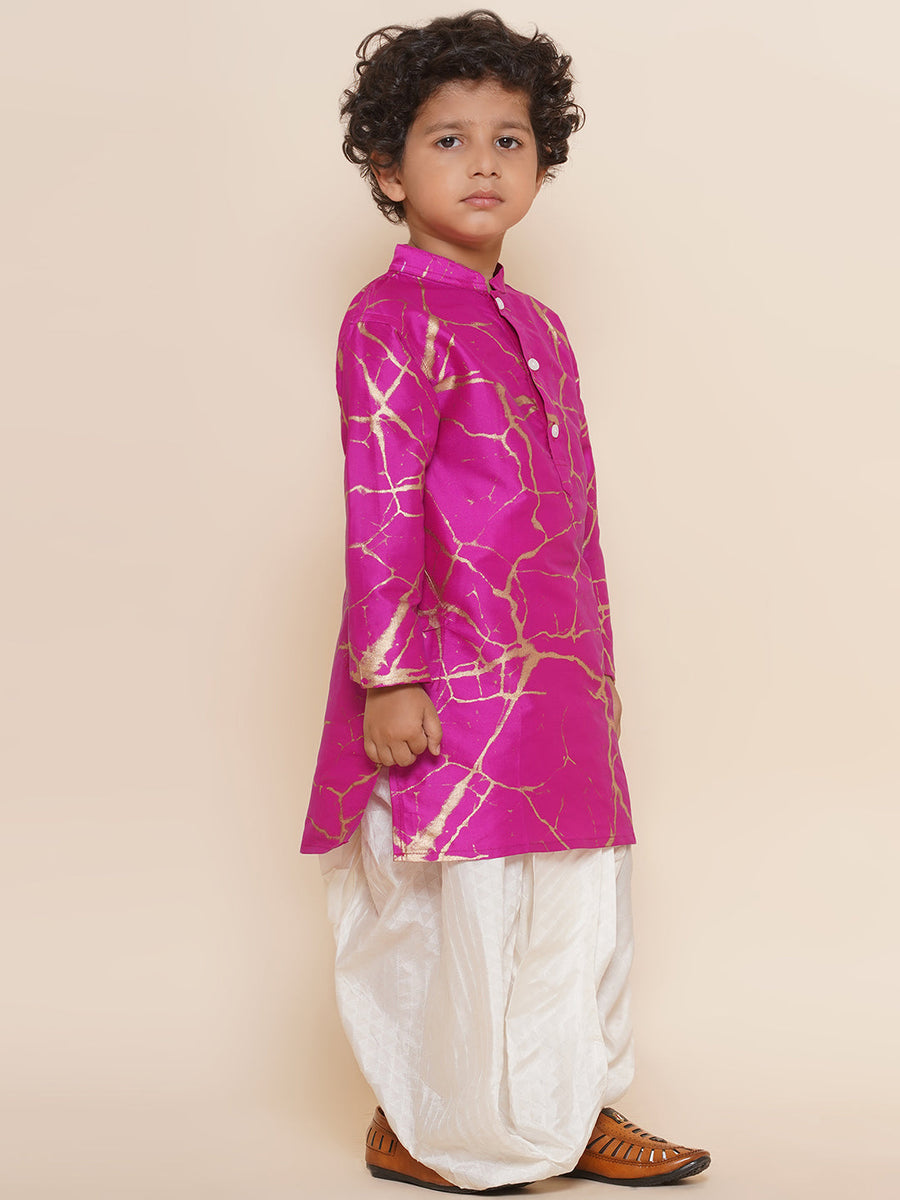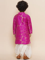 Sethukrishna Boys Gold Printed Kurta and Cream Dhotipant