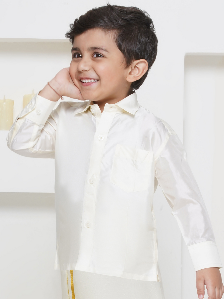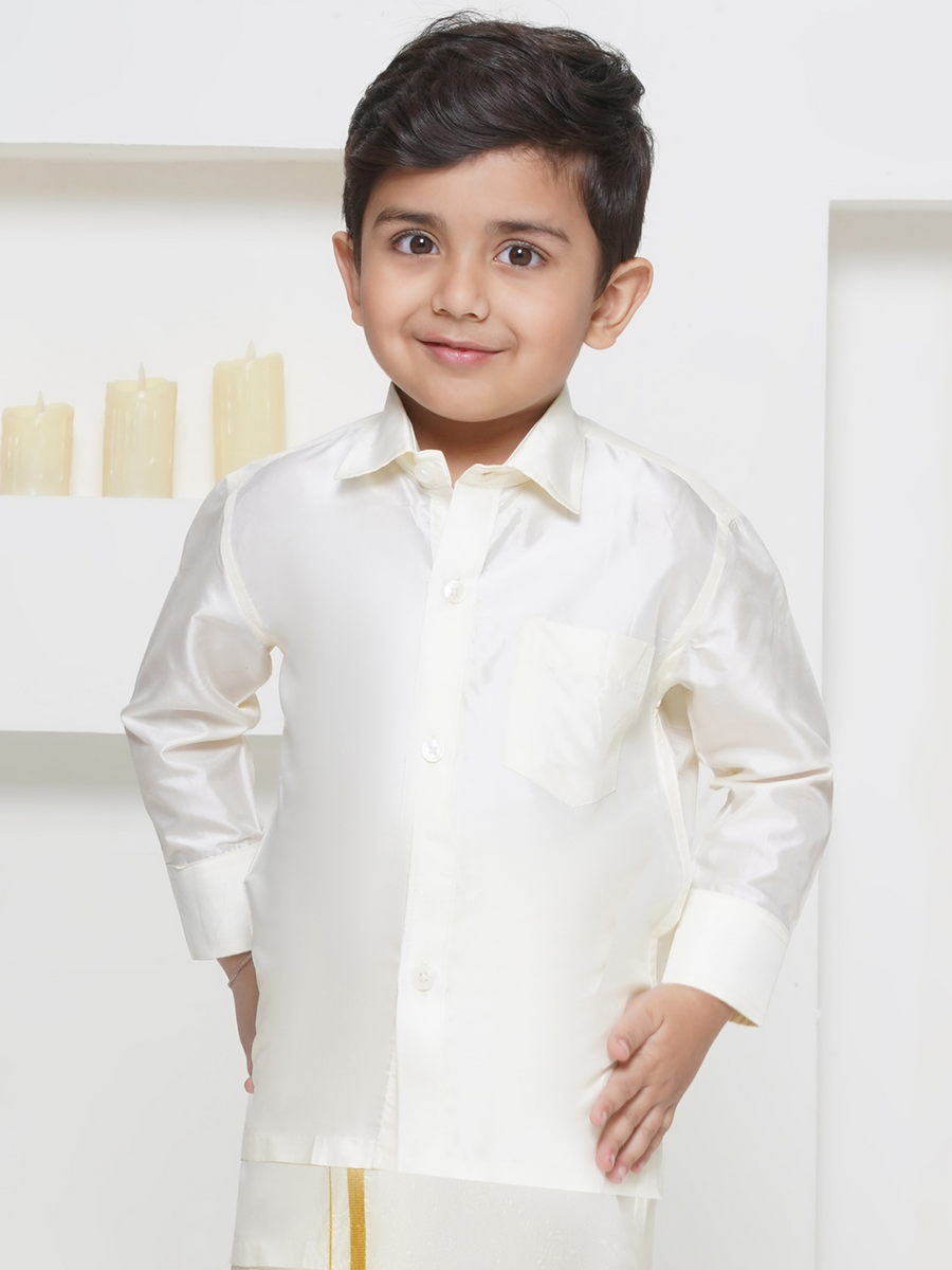 Experience luxury with Sethukrishna Boys Pure Silk Shirt. Made from premium quality pure silk, this solid colour shirt is perfect for ethnic wear. With full sleeves, stay stylish and comfortable all day long. Elevate your wardrobe with this expertly crafted shirt.