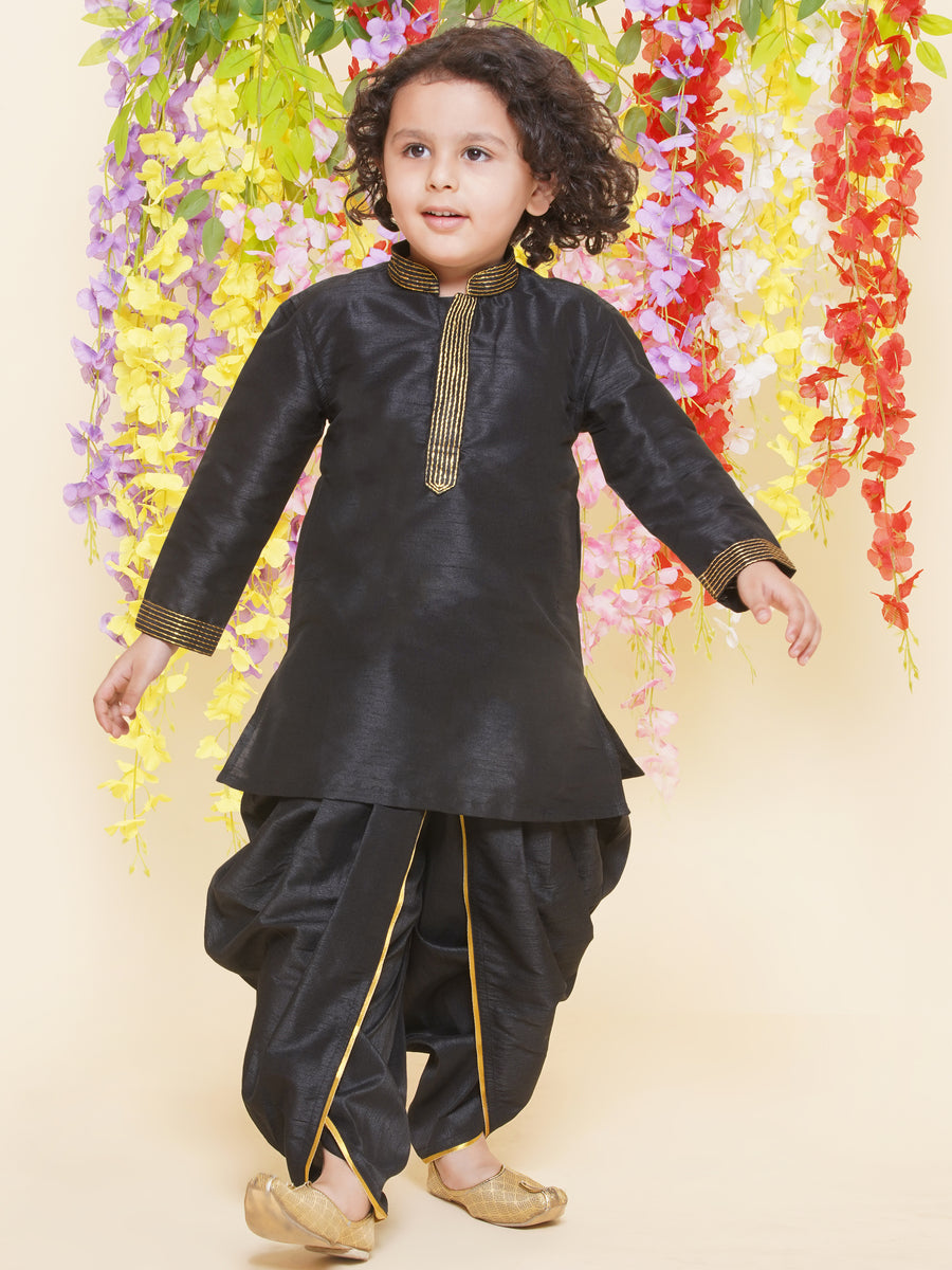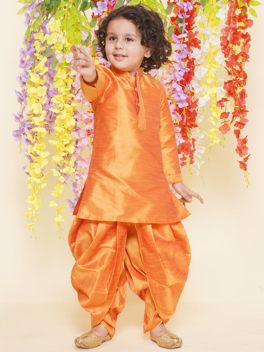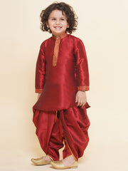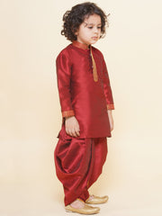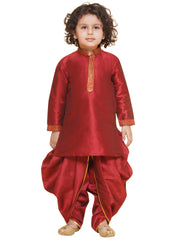 Sethukrishna Boys Slub Dupion Embroidered Kurta and Patiala Pant Set